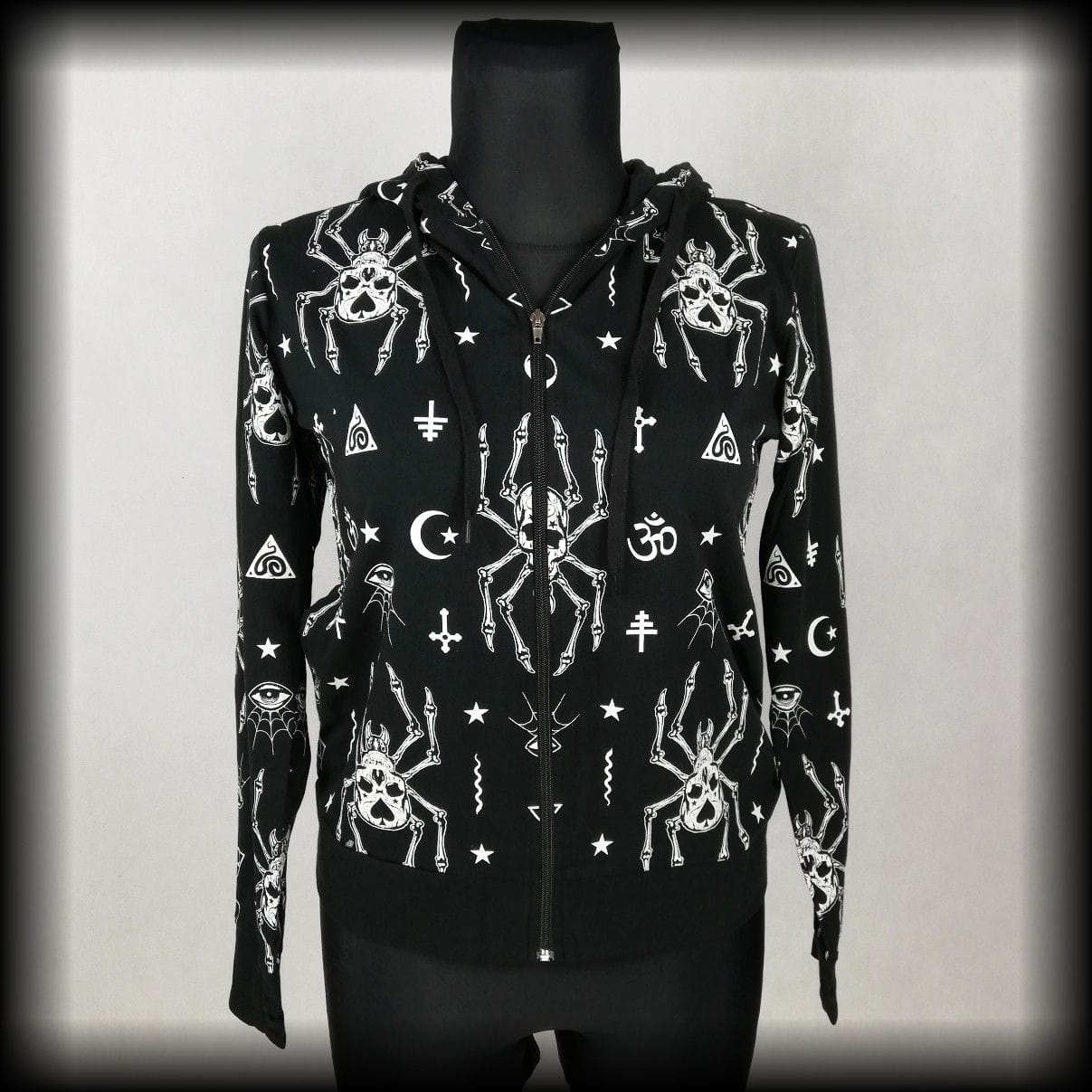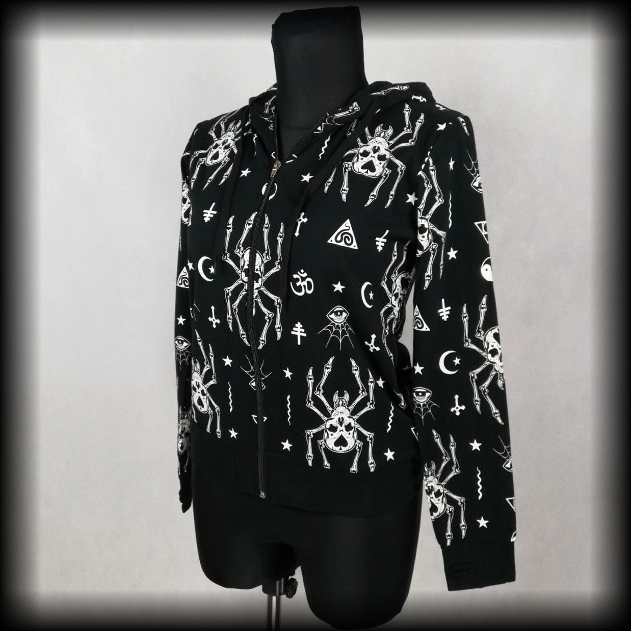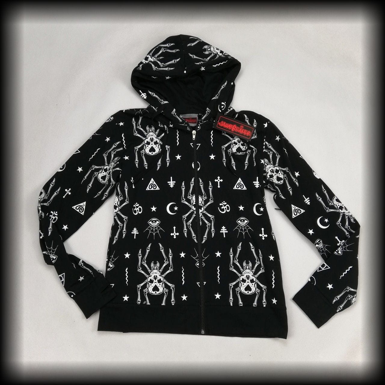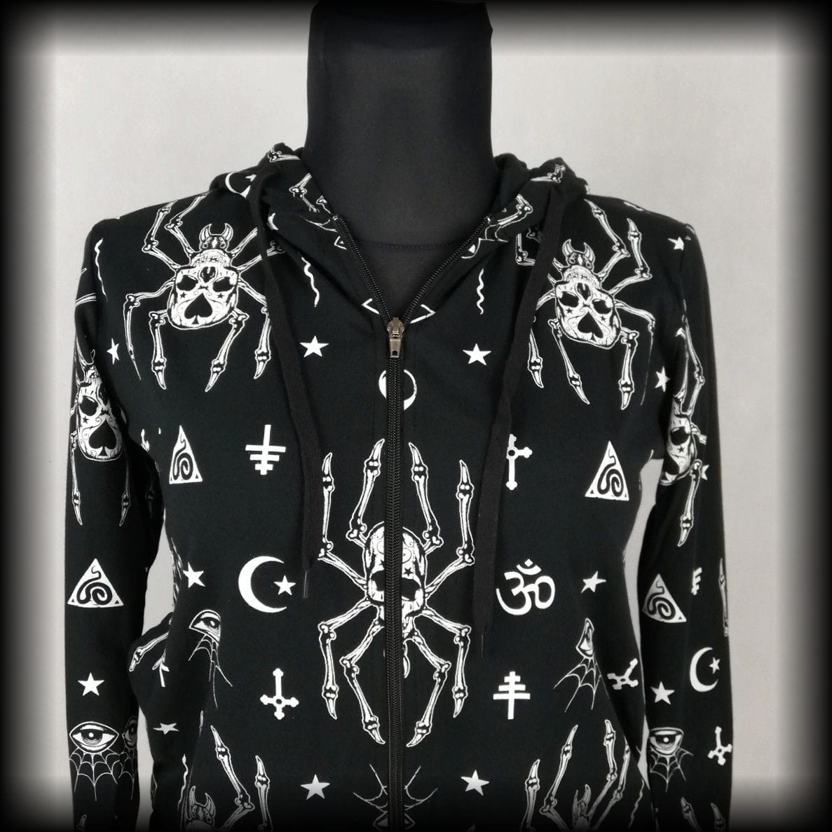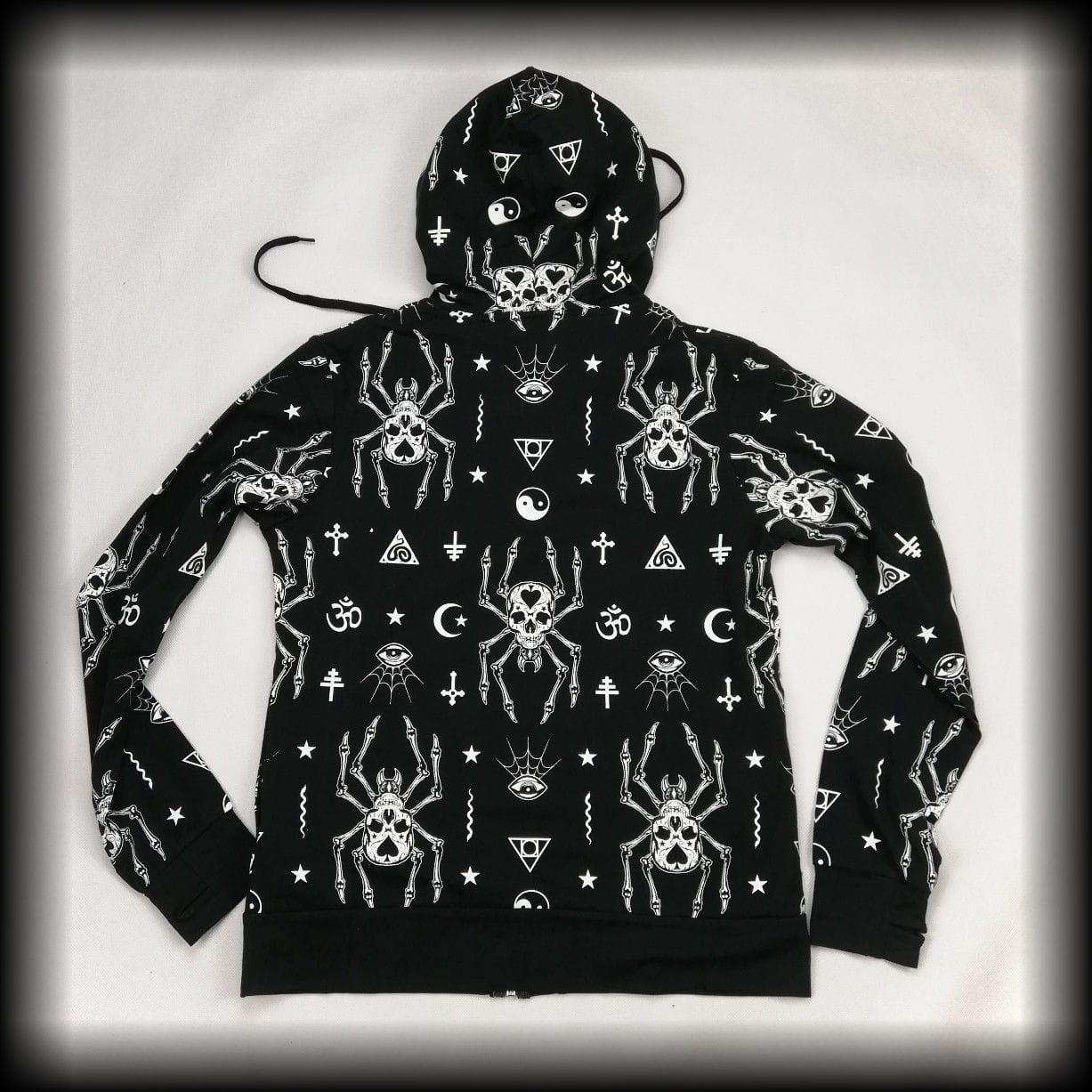 Cienka bluza w czachy, pająki i okultystyczne wzory