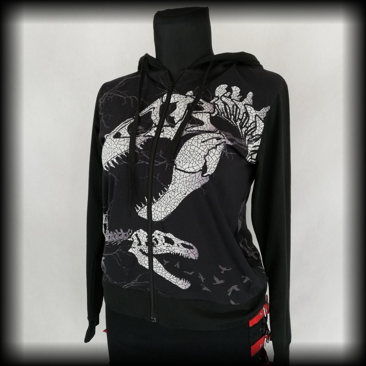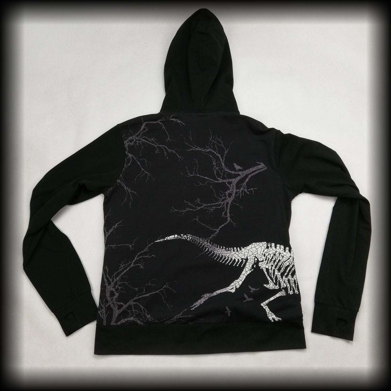 Czarna cienka bluza z nadrukowanymi szkieletami dinozaurów.