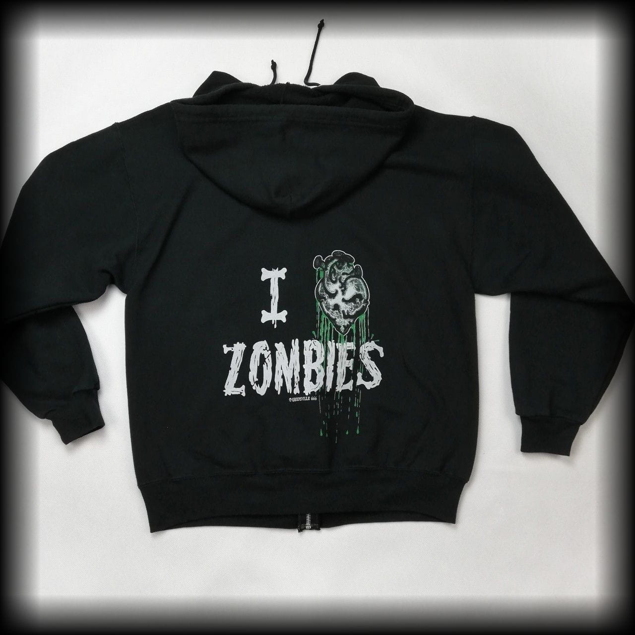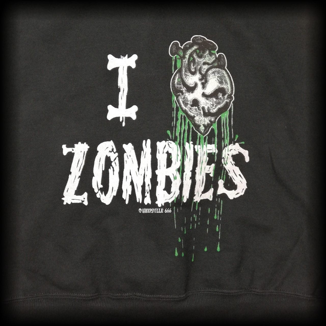 Z przodu nadruk - zielone serce, a z tyłu I ❤ zombies