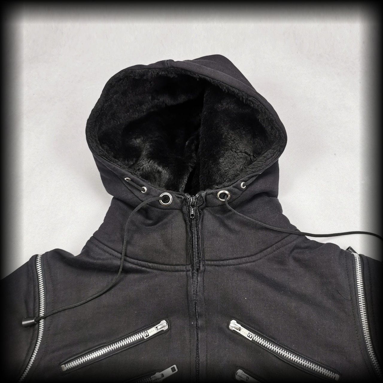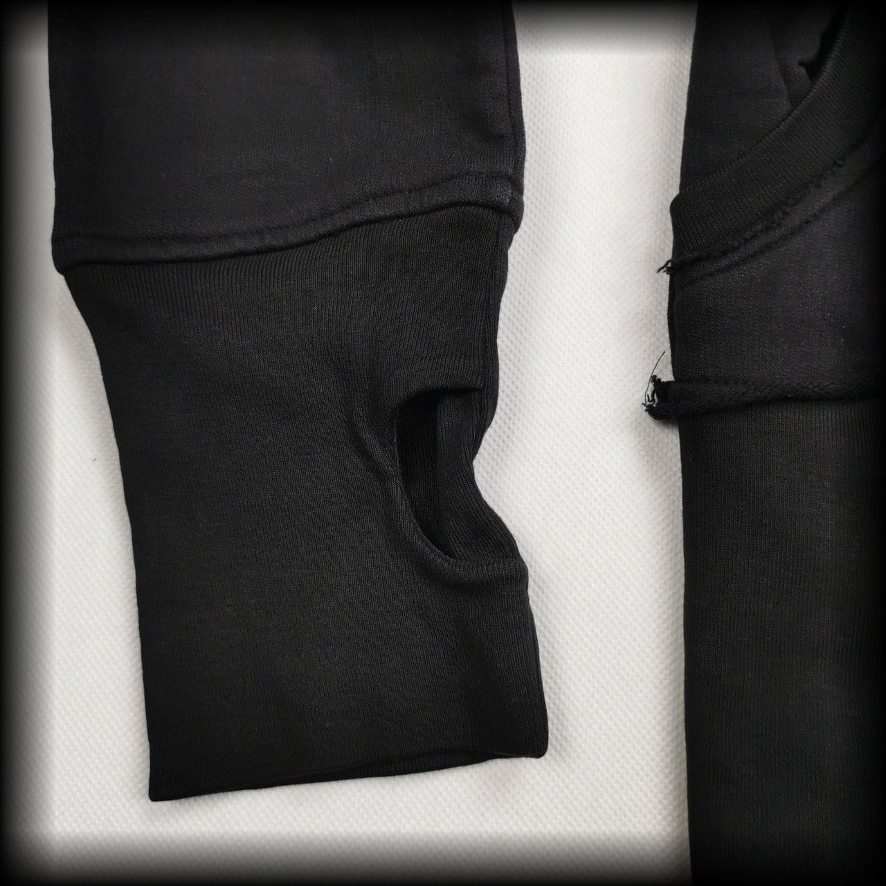 Kaptur z futerkiem i otwory na kciuki w rękawach