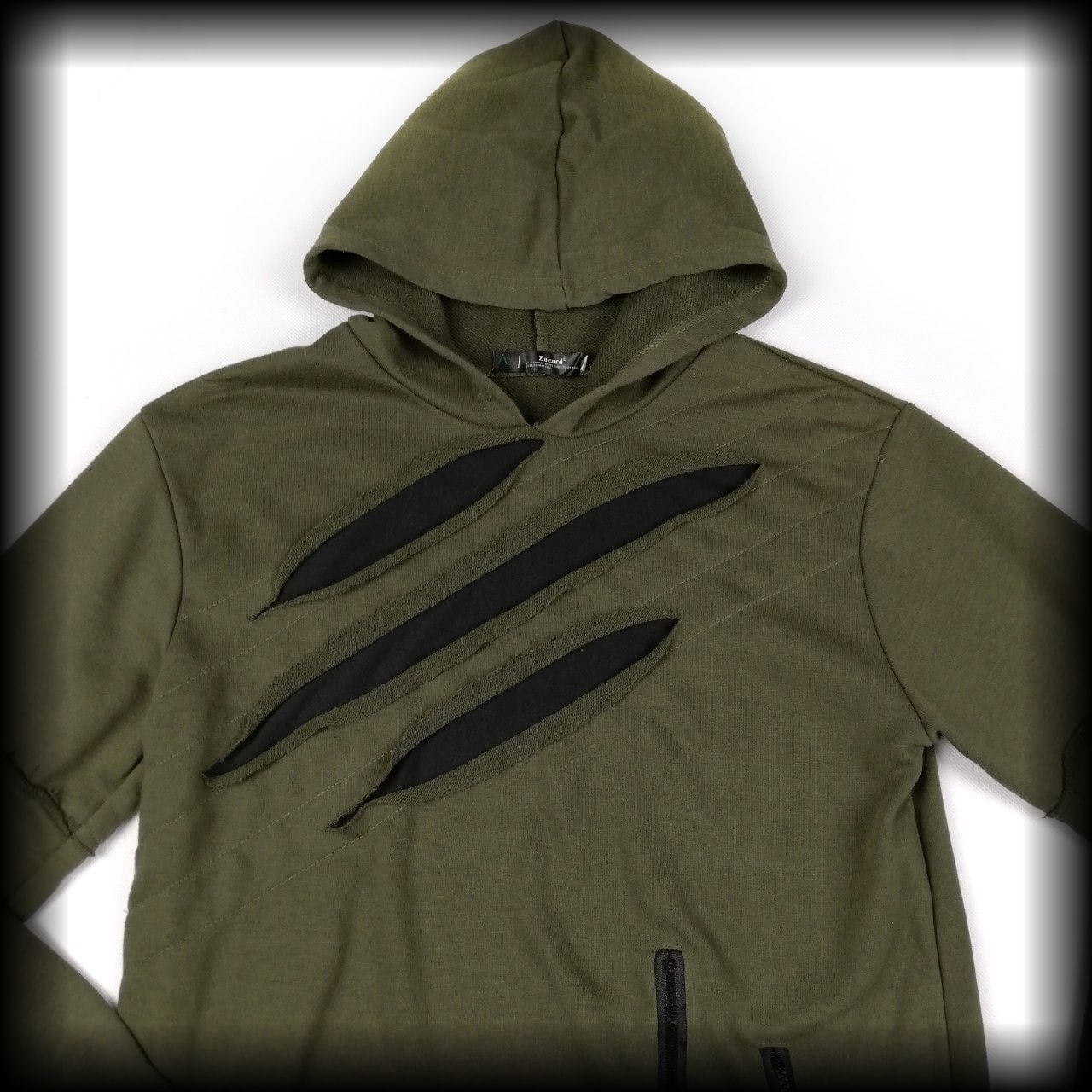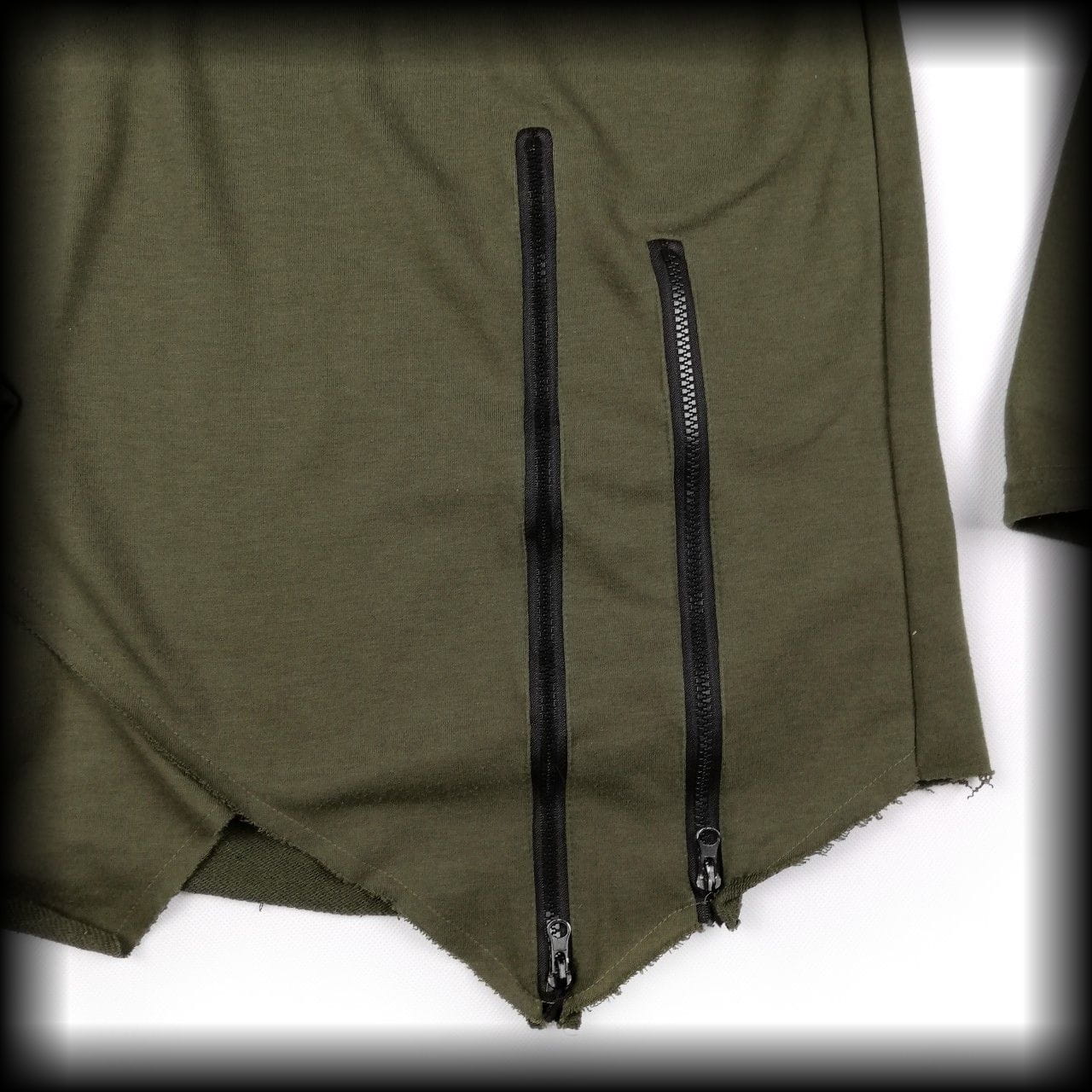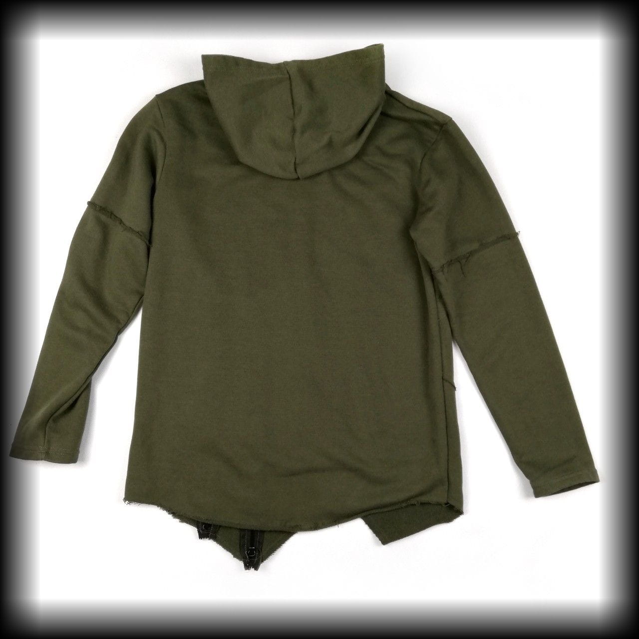 Zielona bluza z kapturem o asymetrycznym, ciekawym kroju