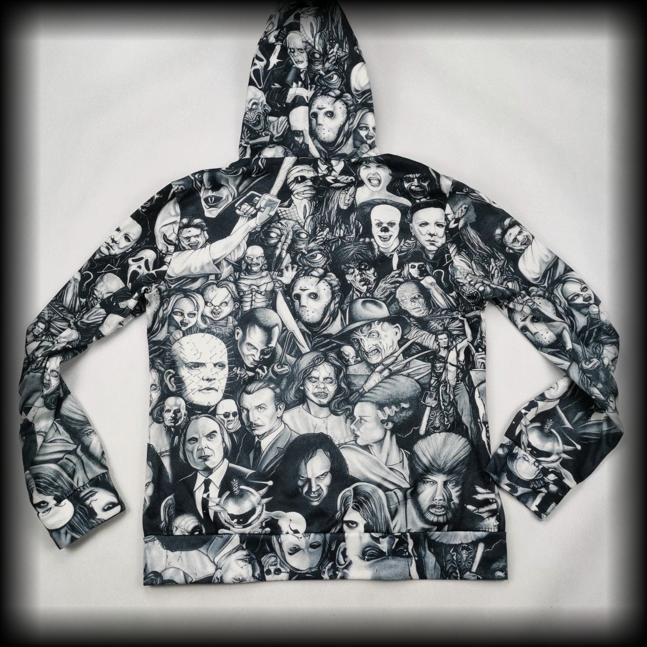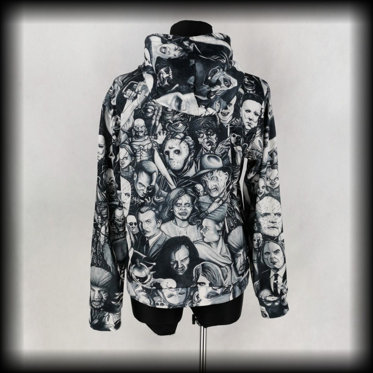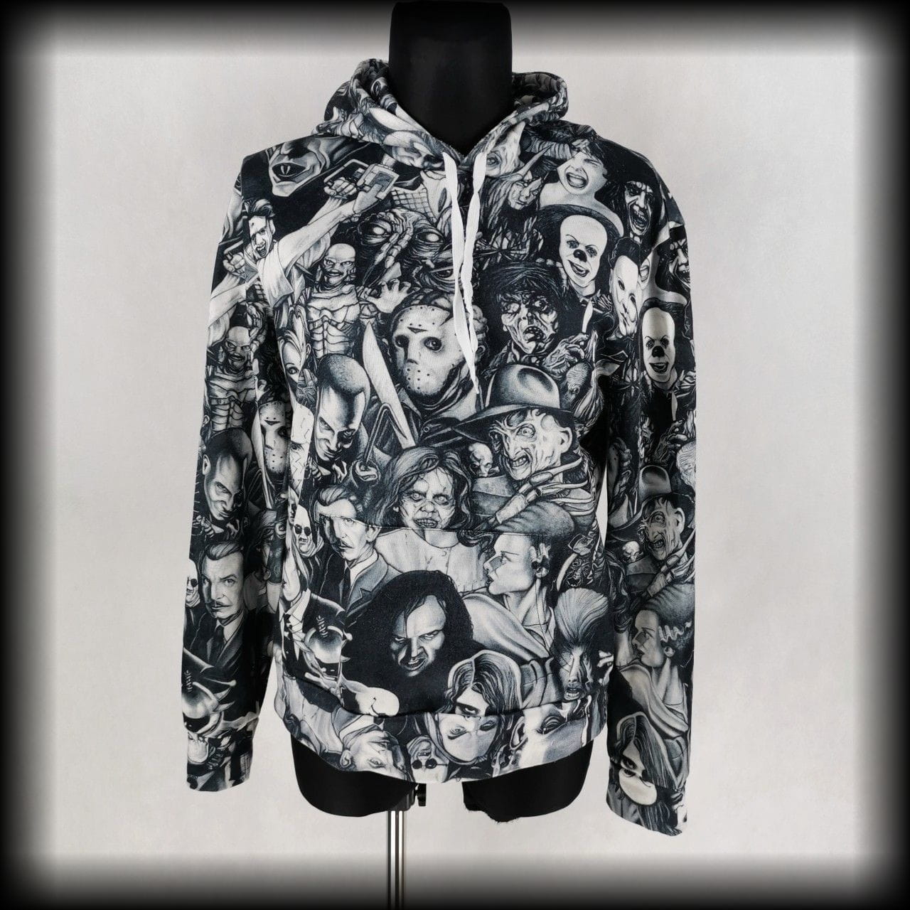 Bluza kangurka z kapturem cała w postaci z horrorów m.in laleczka Chucky, klaun Pennywise, Freddy Krueger, Hellraiser, Hannibal Lecter i wielu innych