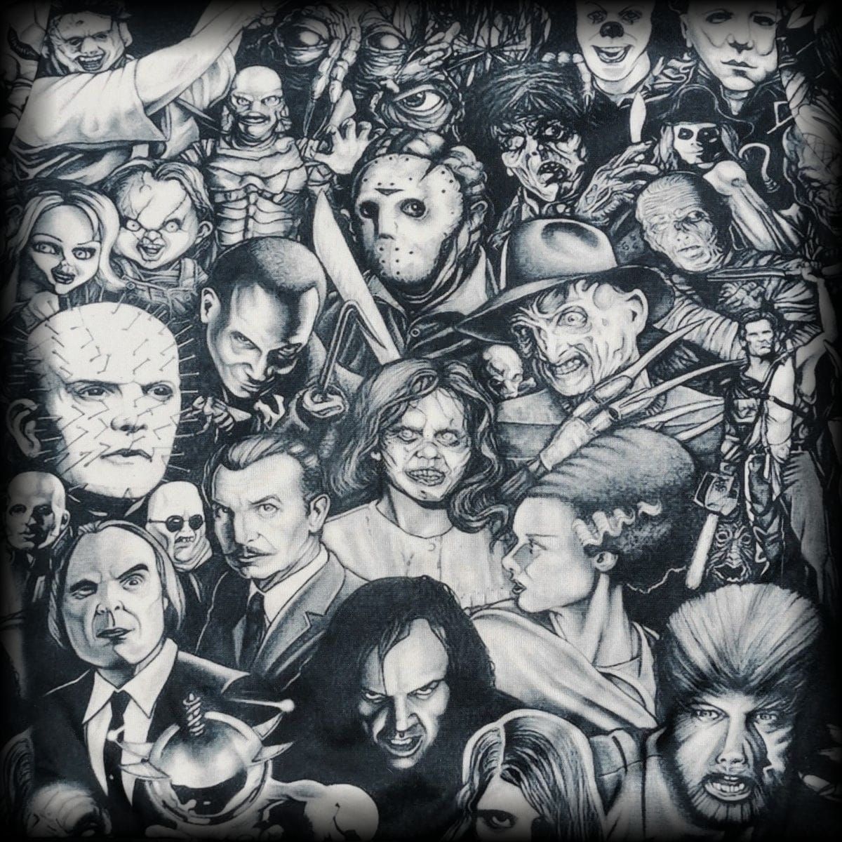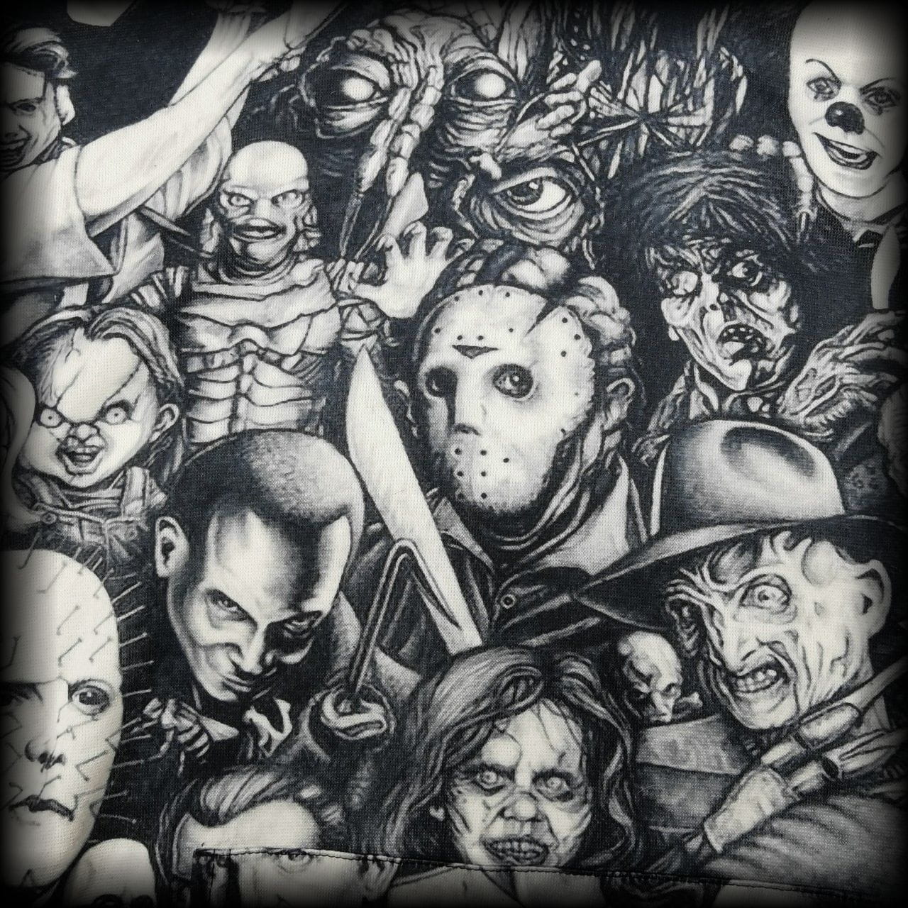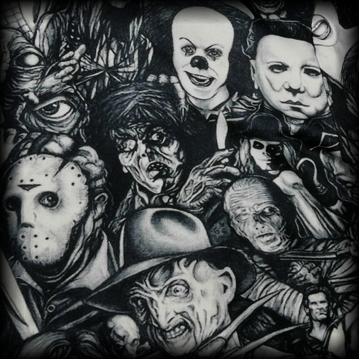 Bluza kangurka z kapturem cała w postaci z horrorów m.in laleczka Chucky, klaun Pennywise, Freddy Krueger, Hellraiser, Hannibal Lecter i wielu innych