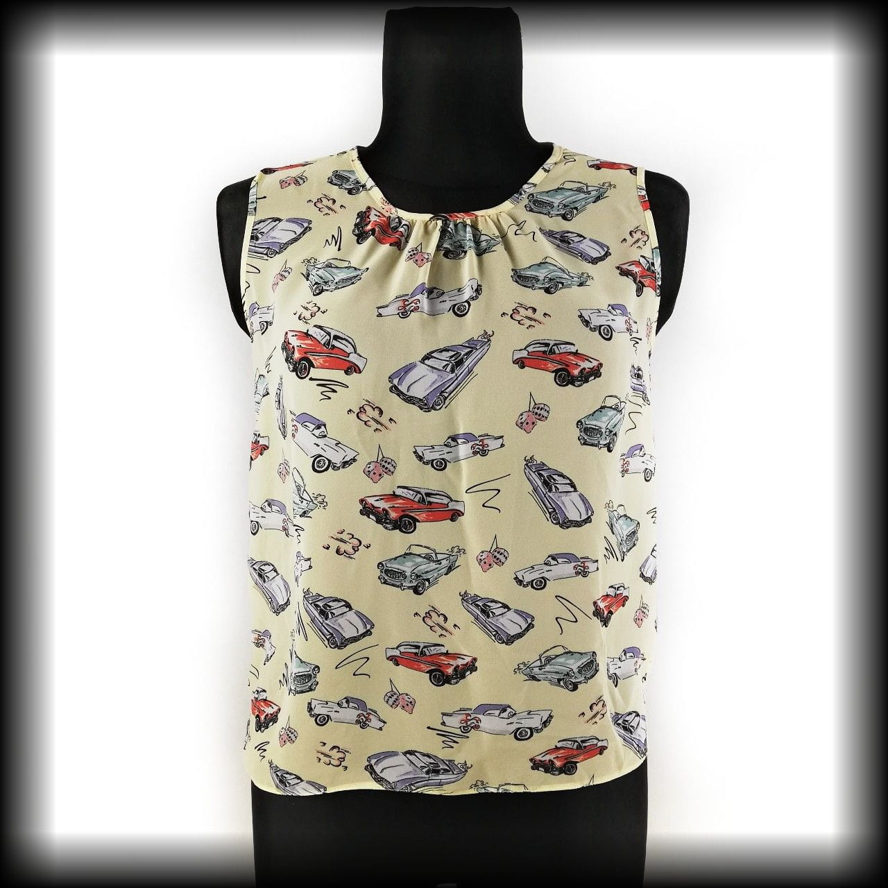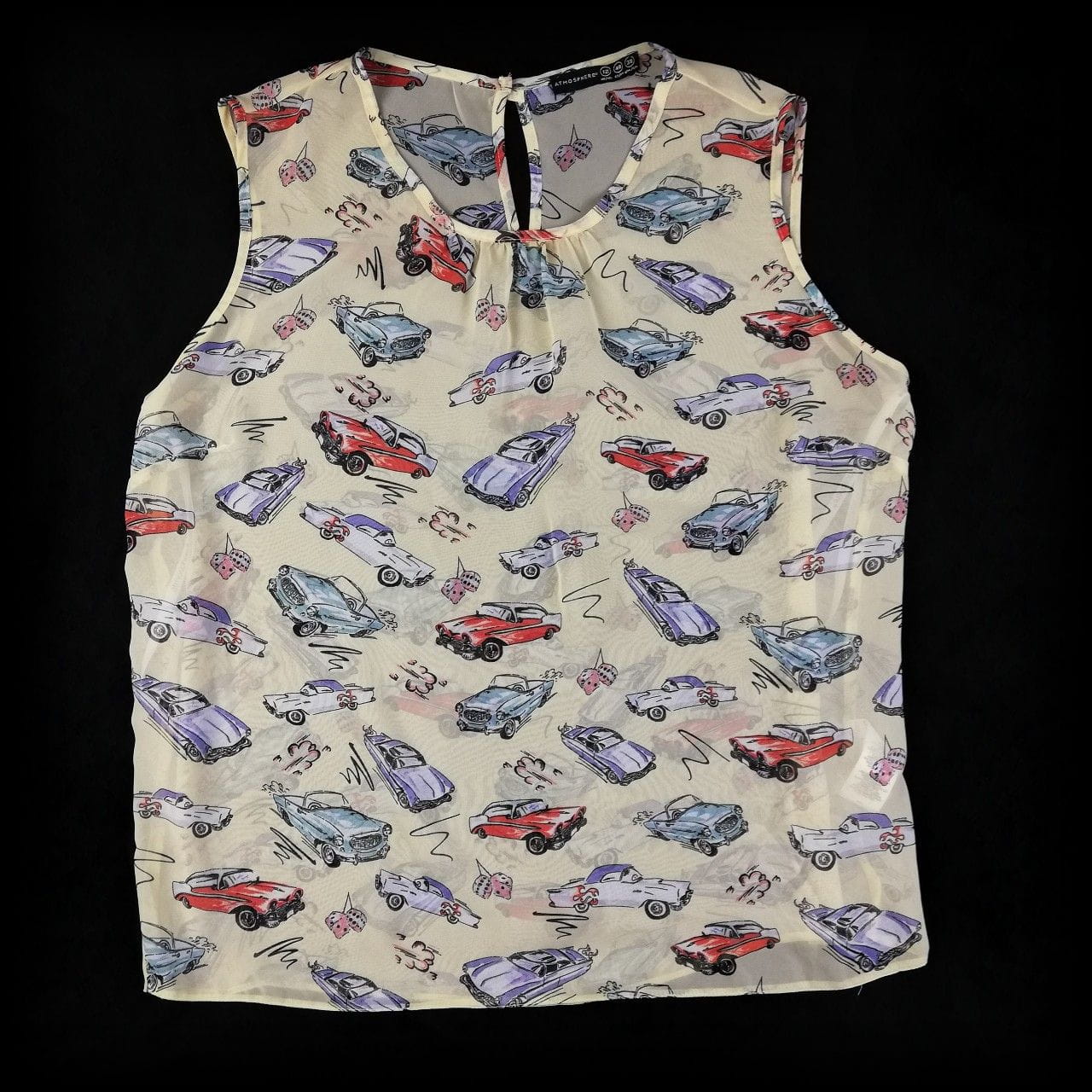 Żółta, transparentna bluzeczka w klimacie rockabilly i pin up