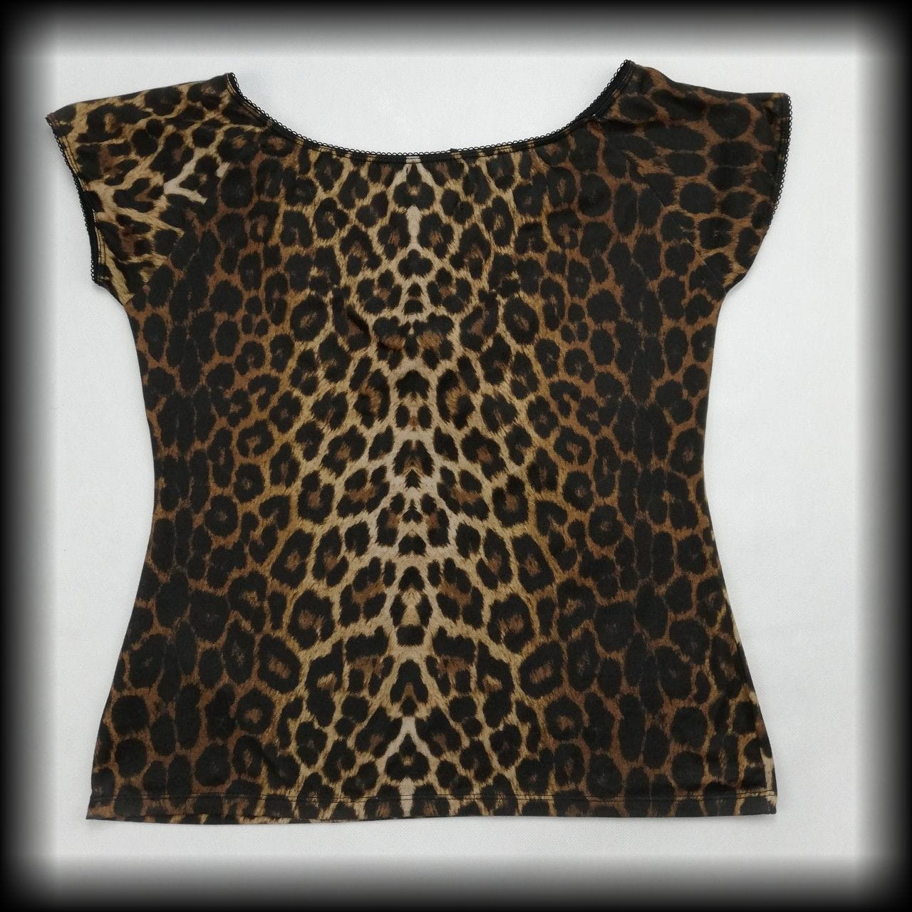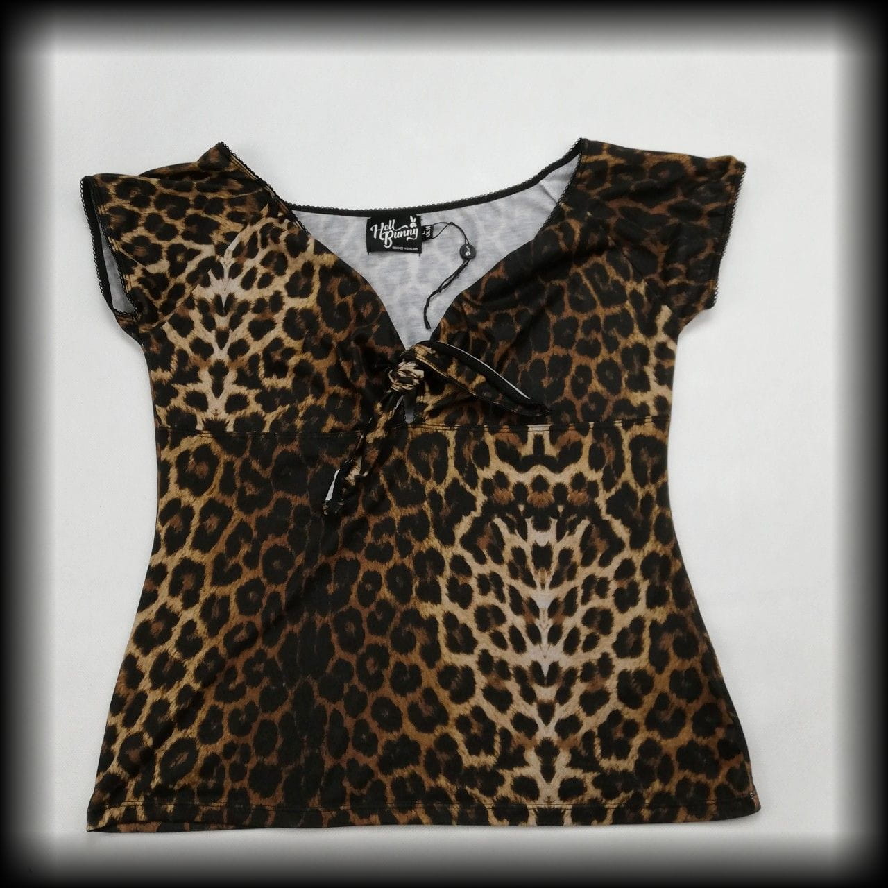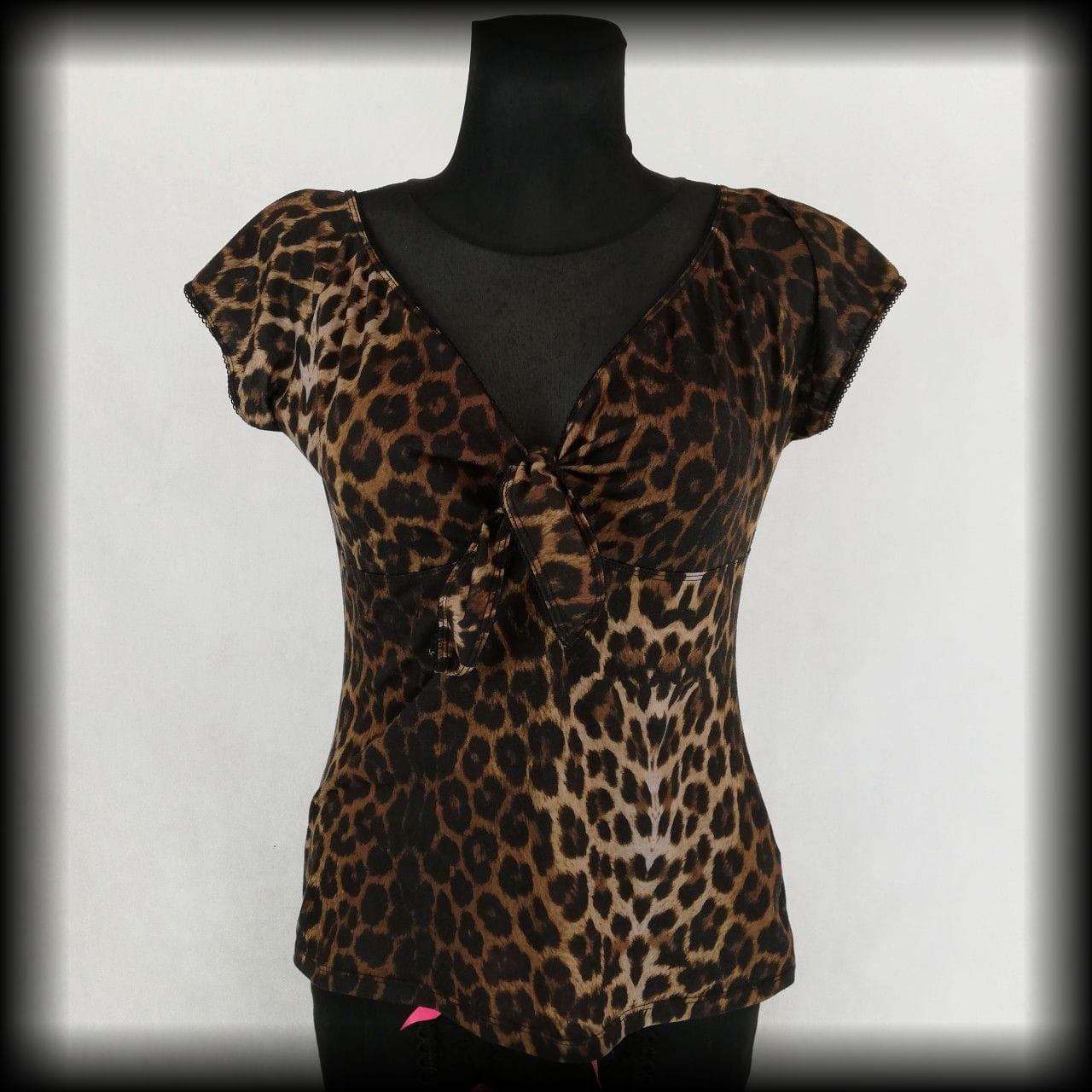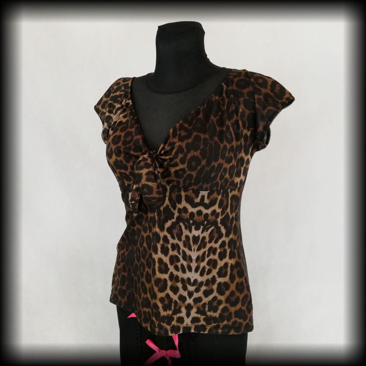 Bluzka z krótkim rękawkiem w panterkę z wiązaniem na biuście
