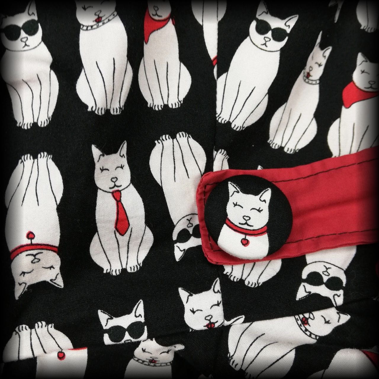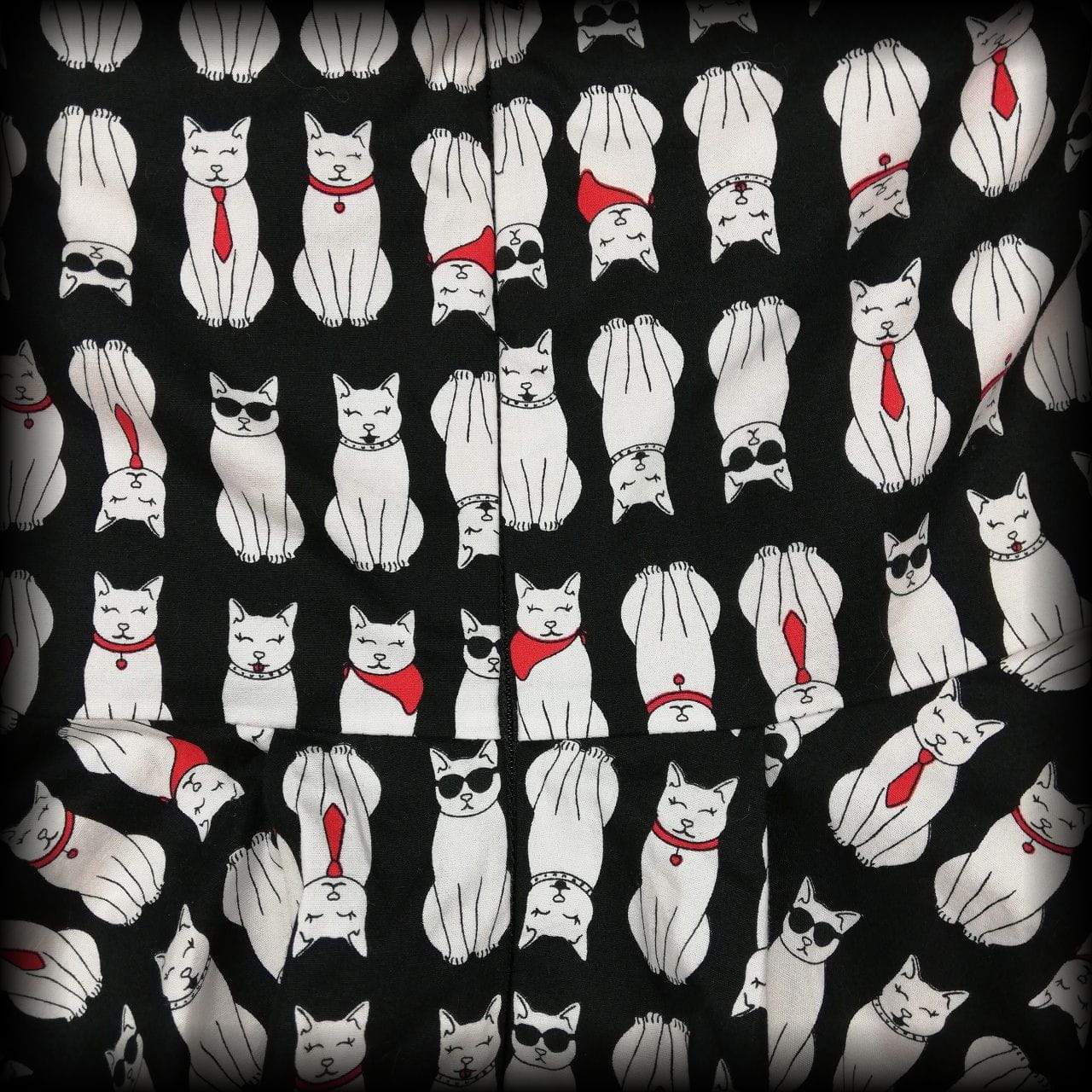 Brak jakichkolwiek metek. Materiał w koty prawdopodobnie bawełna, czerwony może być sztuczny