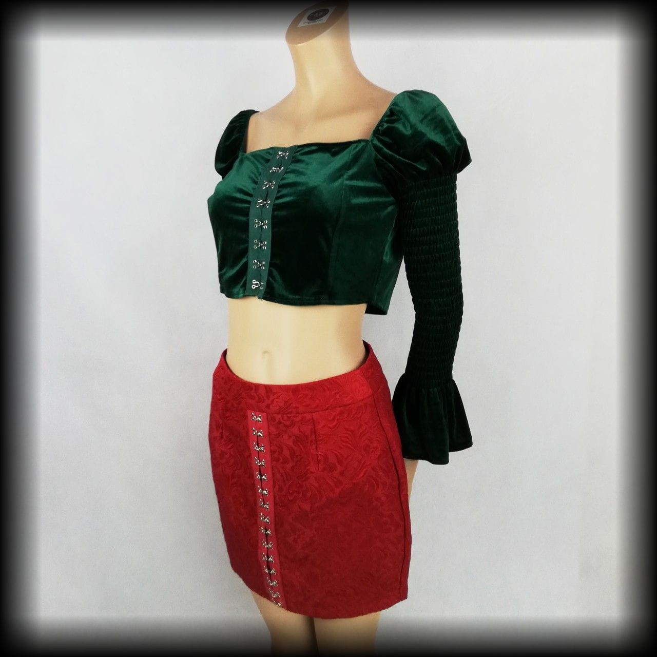 Bluzka aksamitna gorsetowa M/L crop top goth victorian