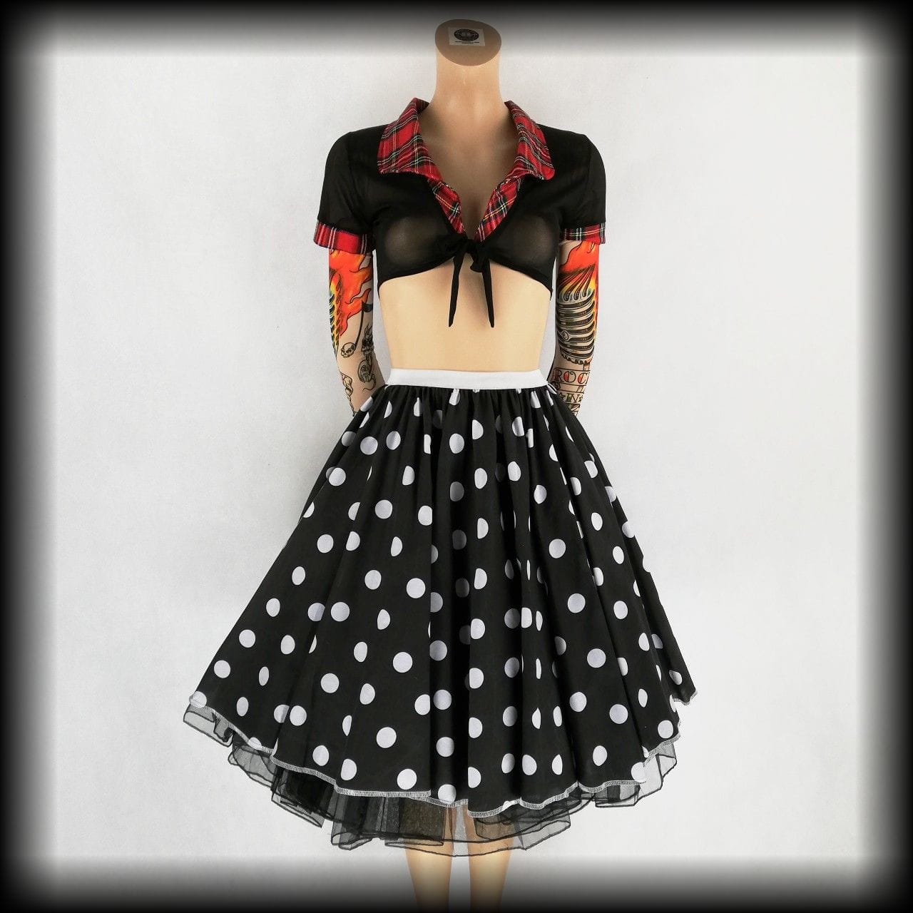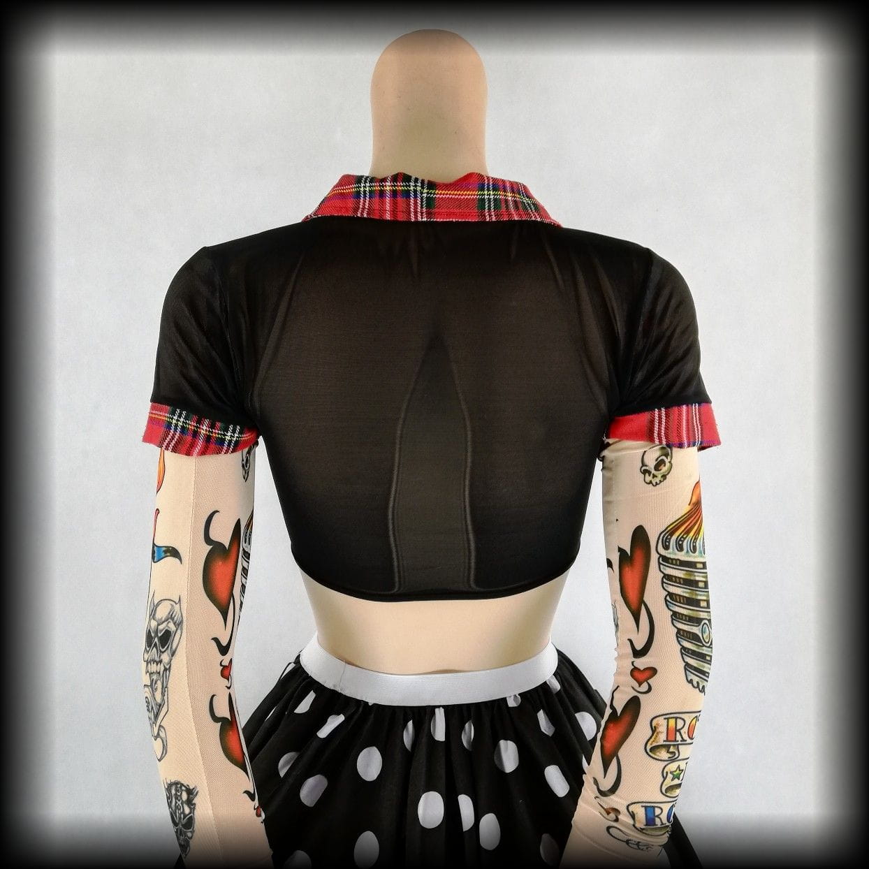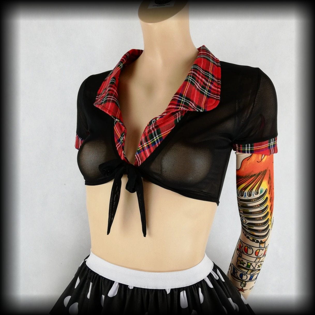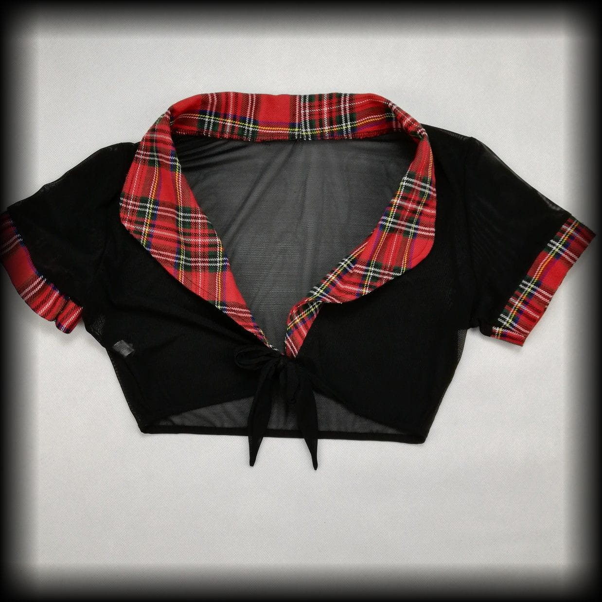 Bluzka crop top S czarna transparentna z kratką