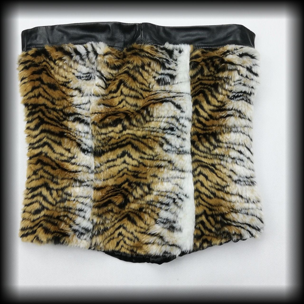 Z przodu futro z tygrysa, z tyłu eko skóra
