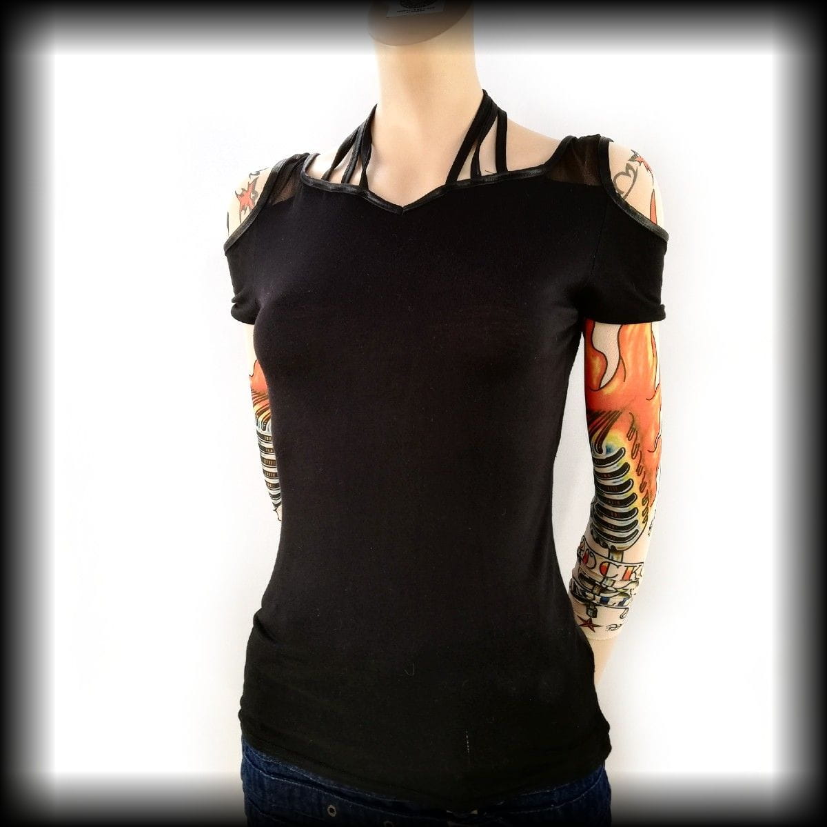 Bluzka gothic rock M wiązana na szyi