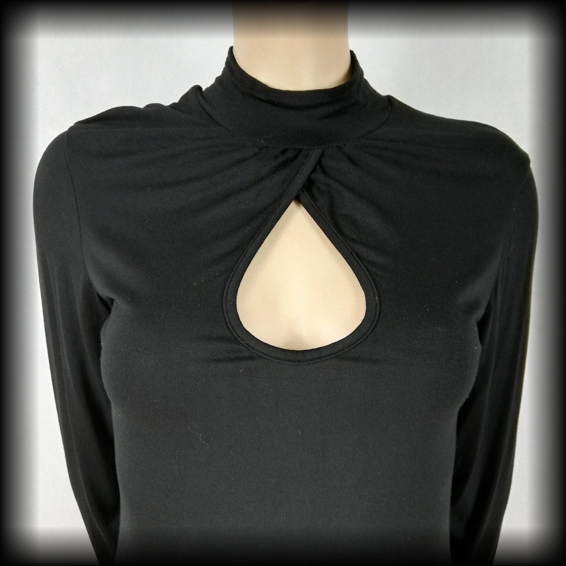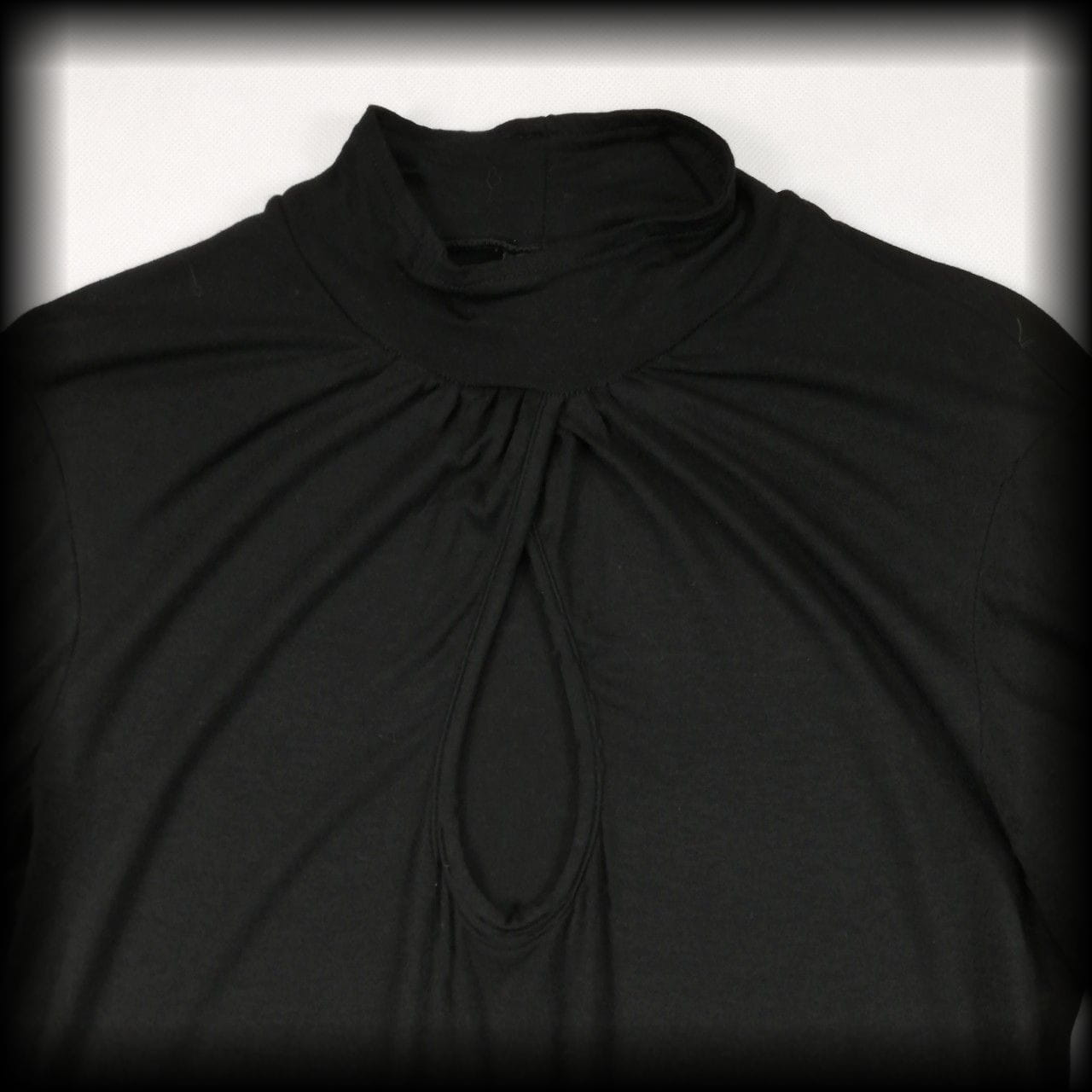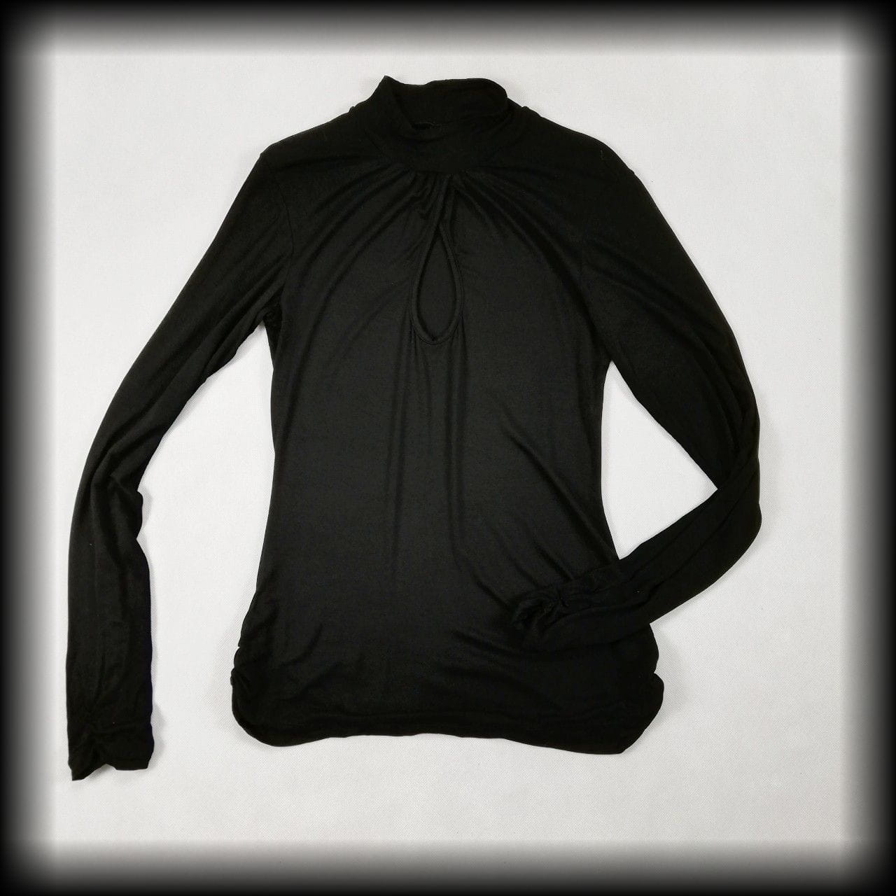 Czarna bluzka z długim rękawem i golfem. Posiada fikuśne wycięcie na dekolcie- łezkę