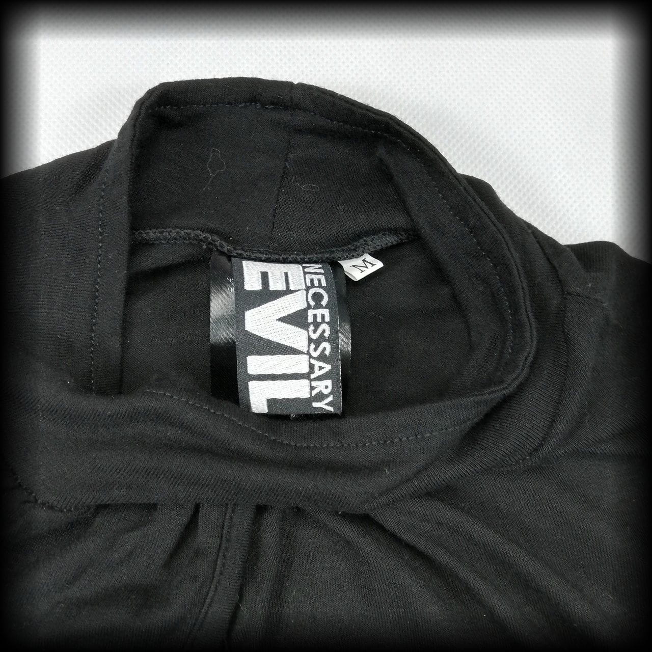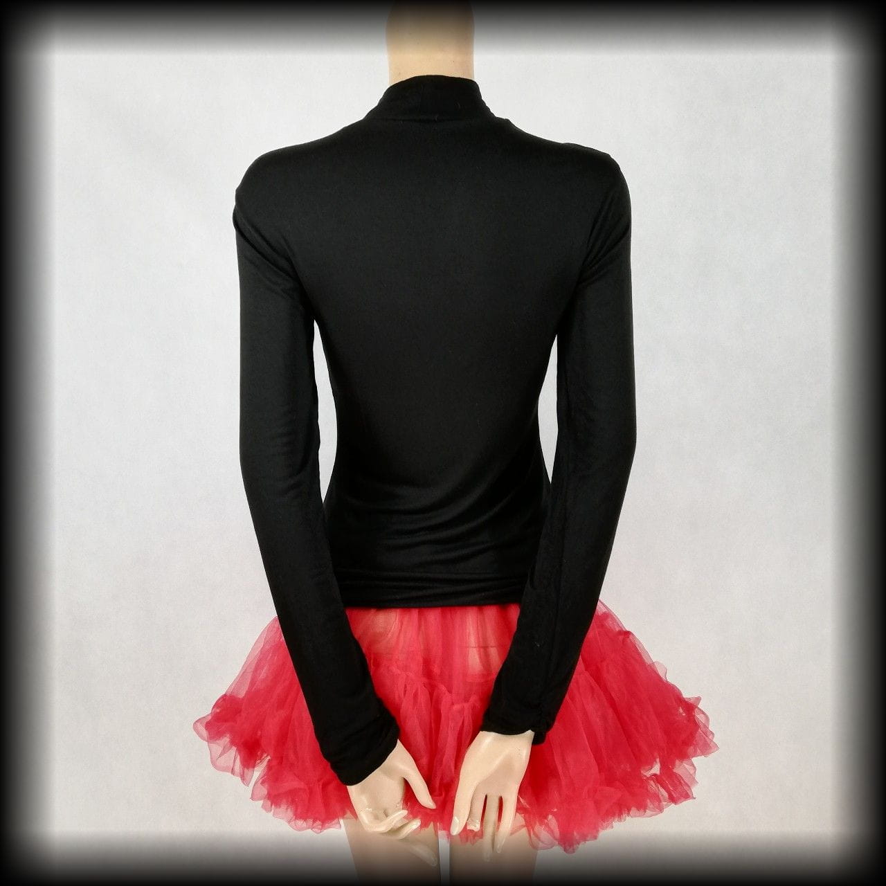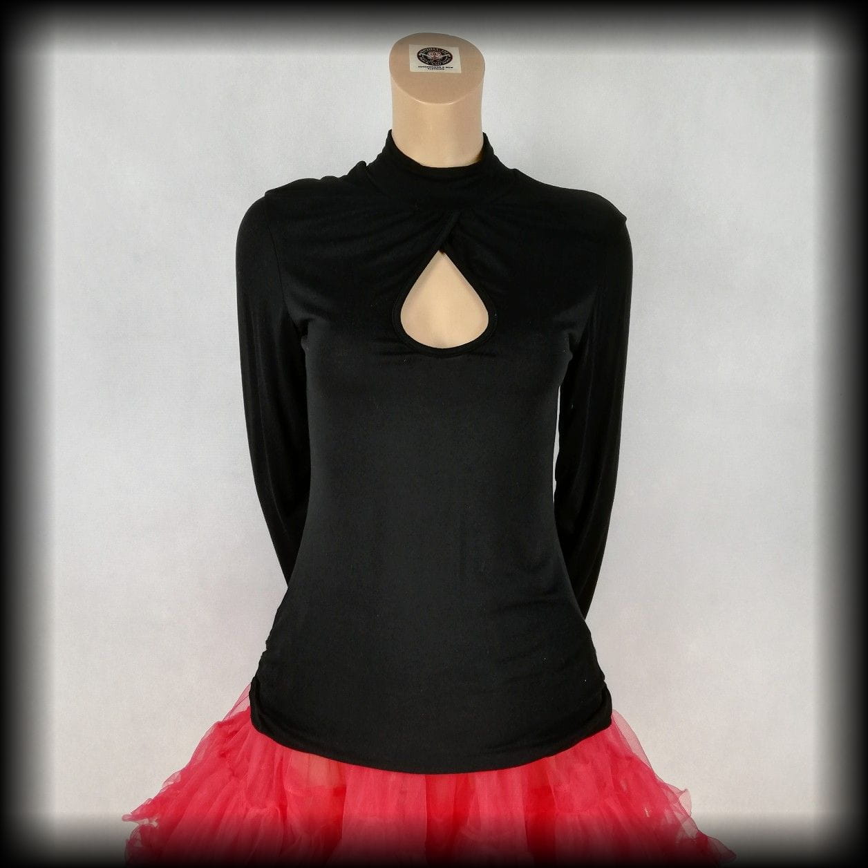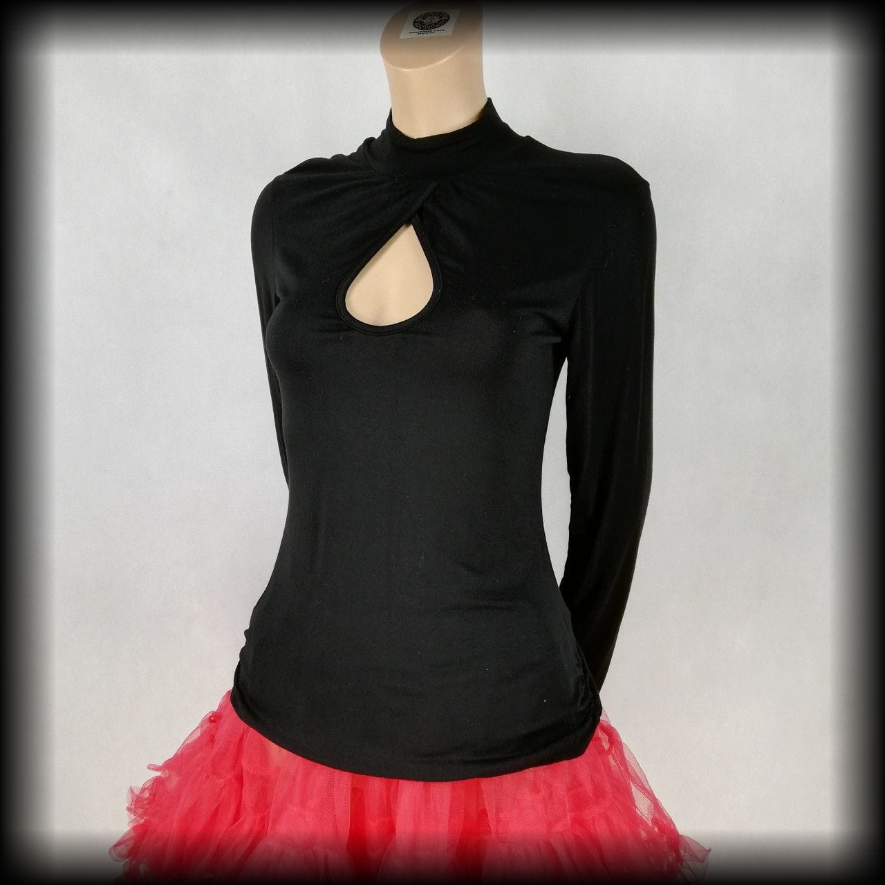 Czarna bluzka z długim rękawem i golfem. Posiada fikuśne wycięcie na dekolcie- łezkę