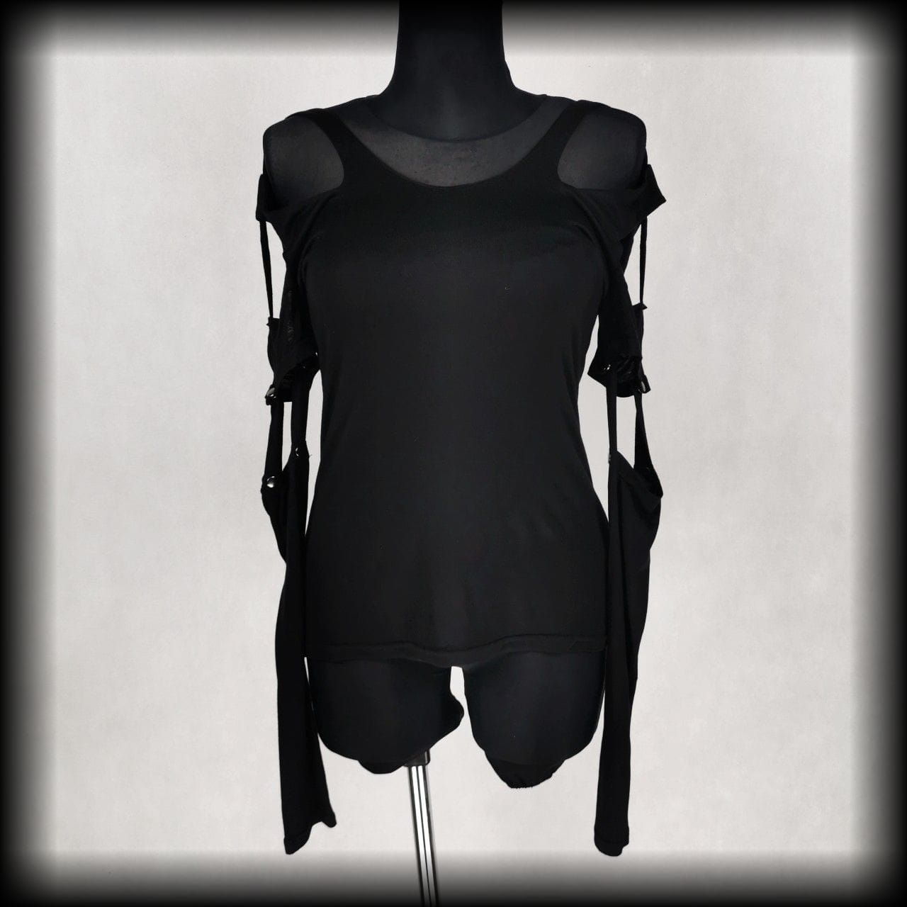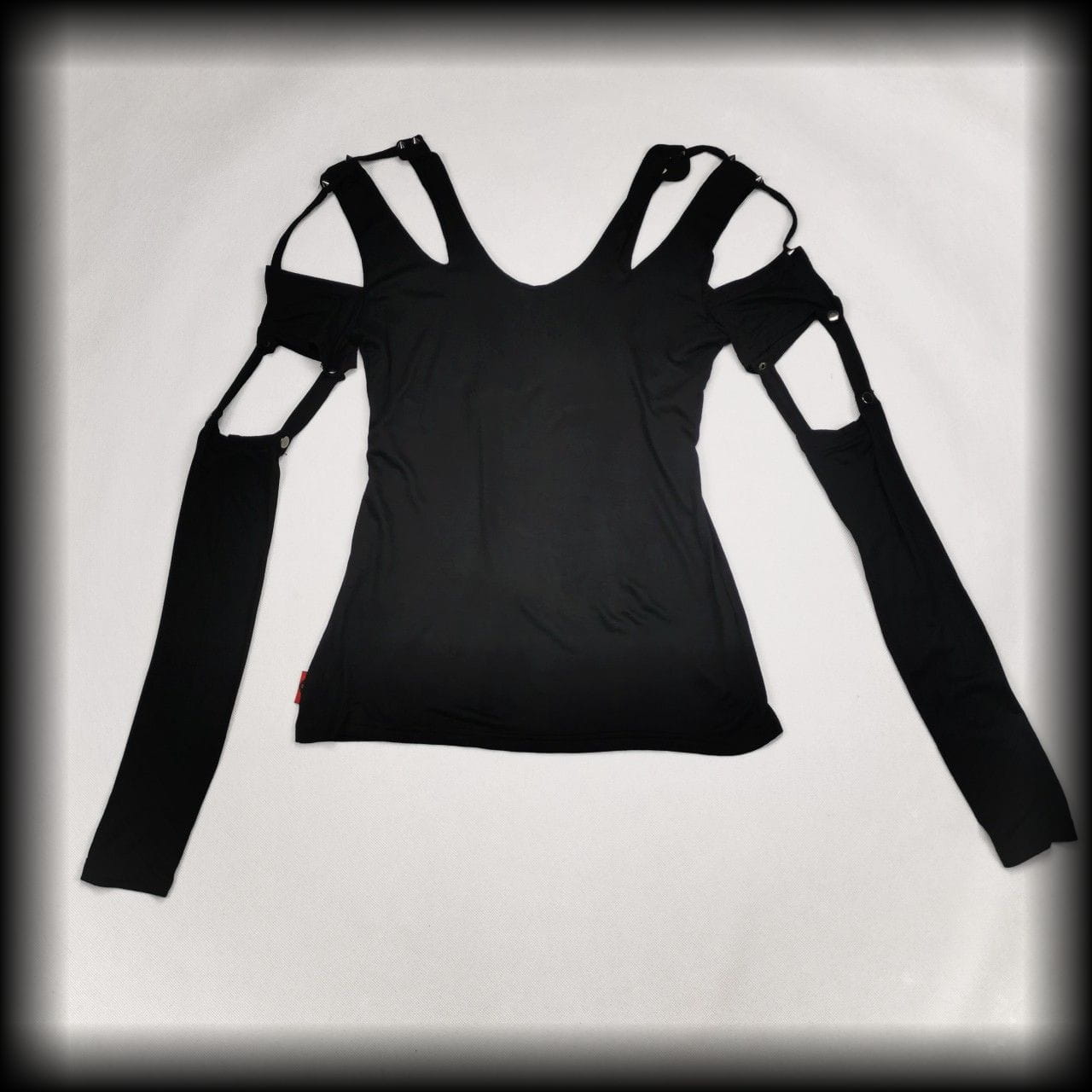 Czarna bluzka z długimi rękawami - są odpinane, powycinane i naćwiekowane