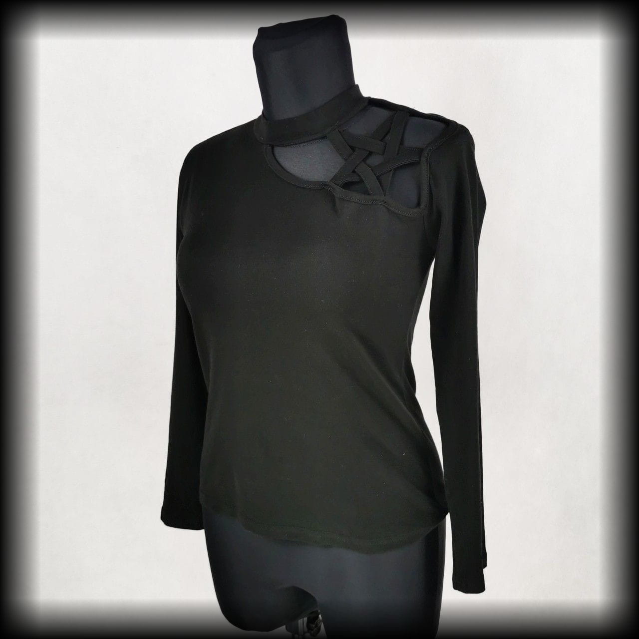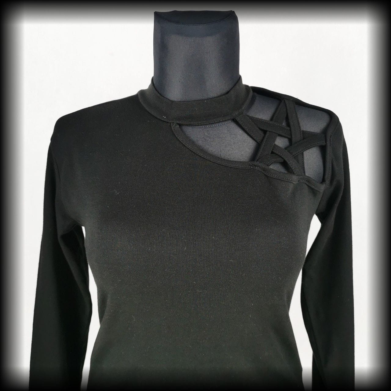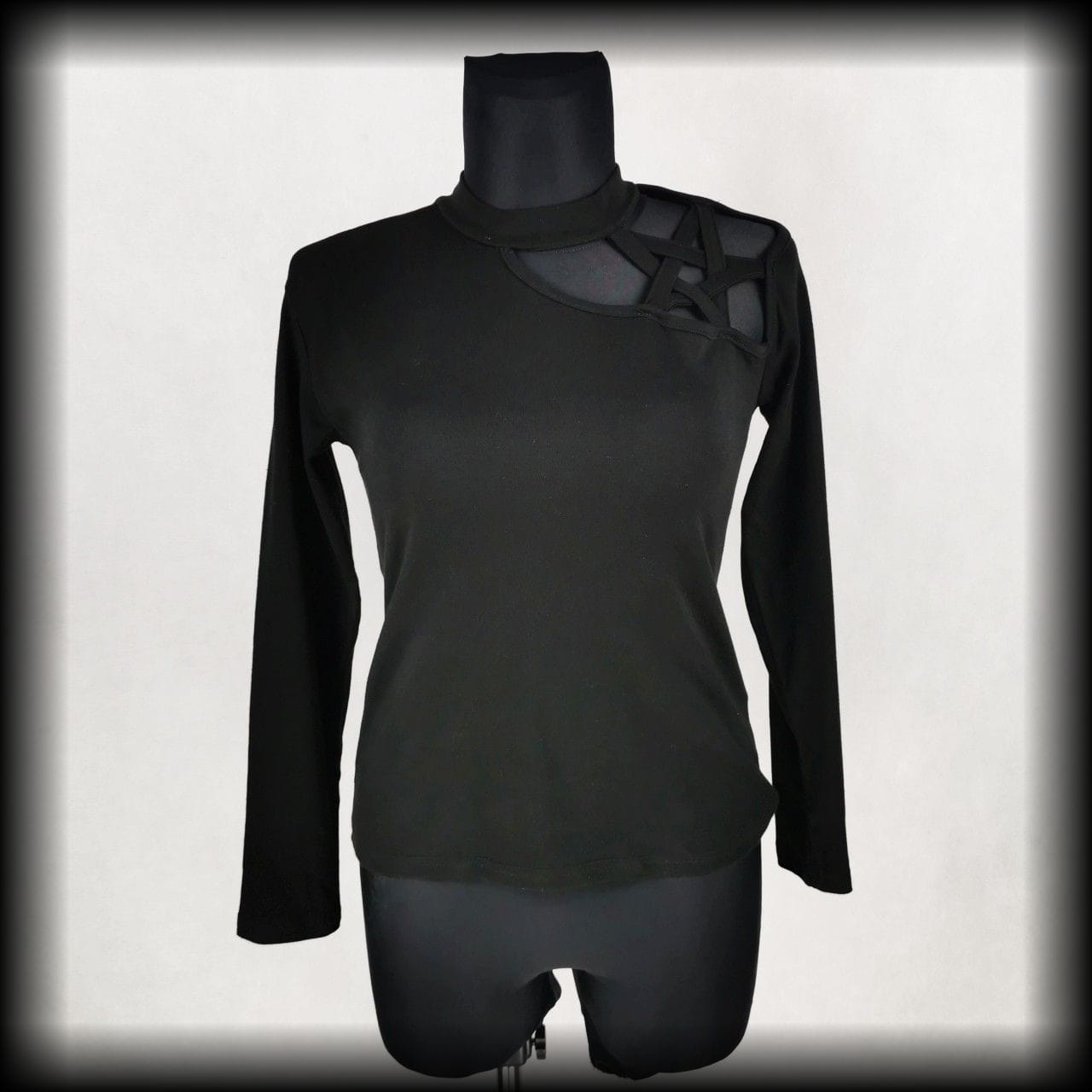 Czarna bluzka z długimi rękawami i wycięciem w kształcie pentagramu