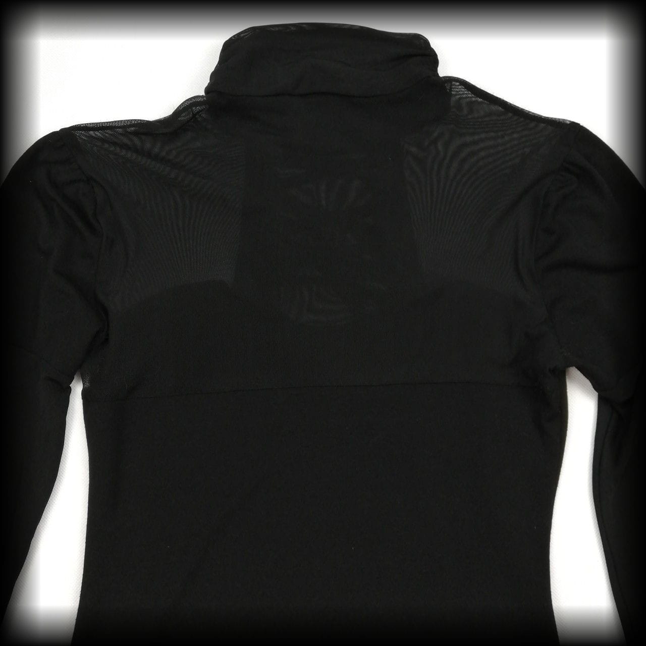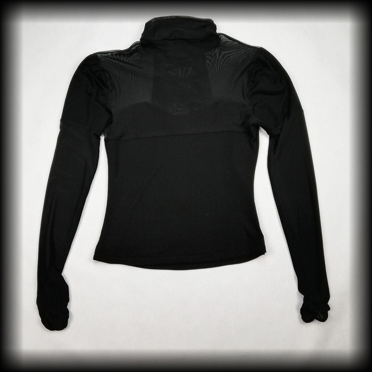 Bluzka używana w dobrym stanie. Posiada widoczne ślady noszenia - na plecach na transparentnej części lekkie "zmechacenia" oraz wychodzące cienkie elastyczne niteczki