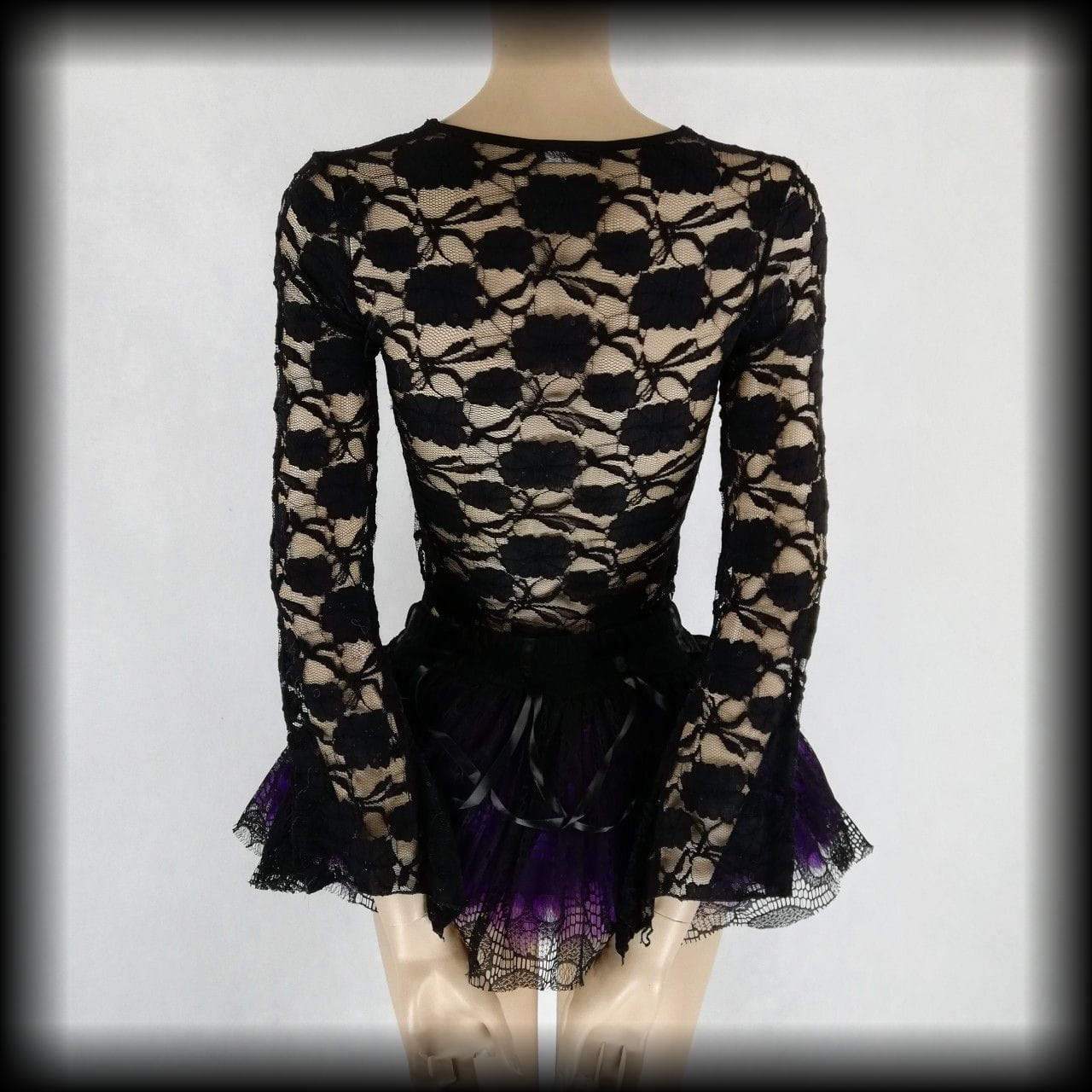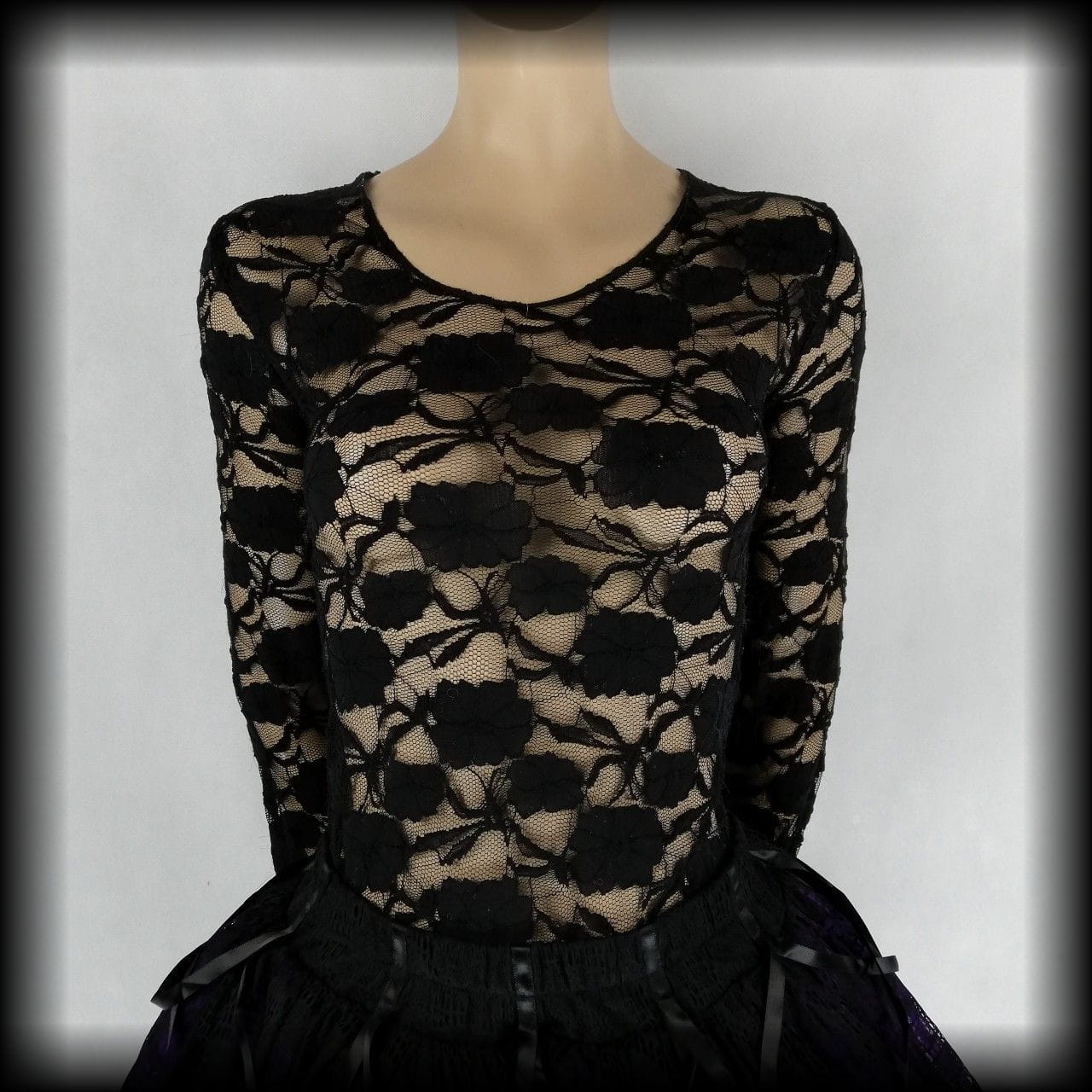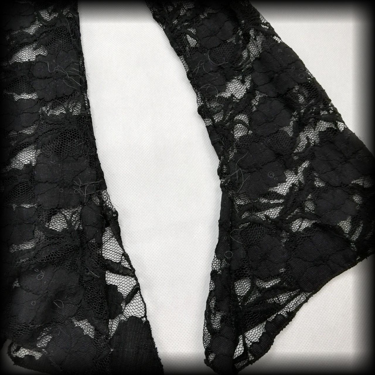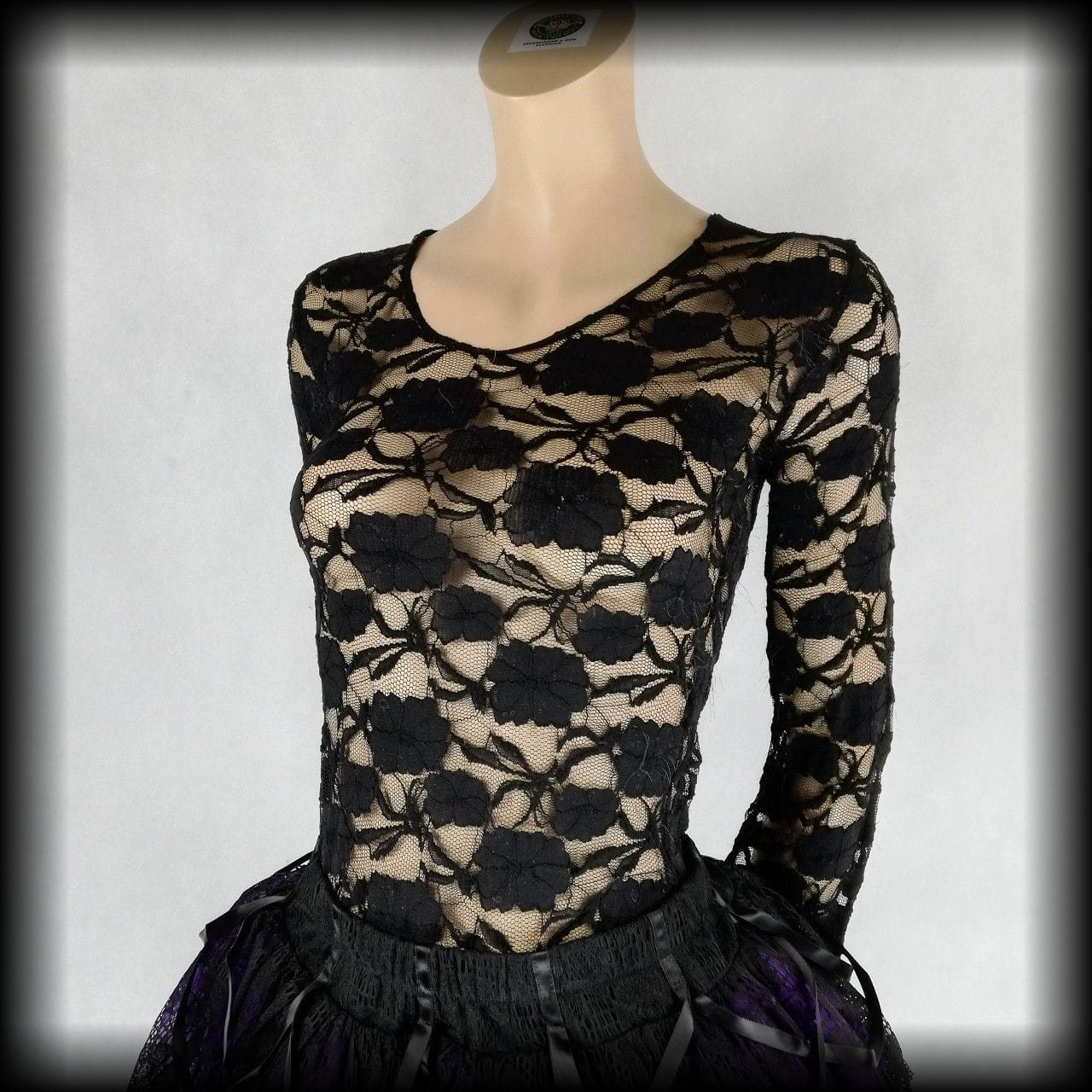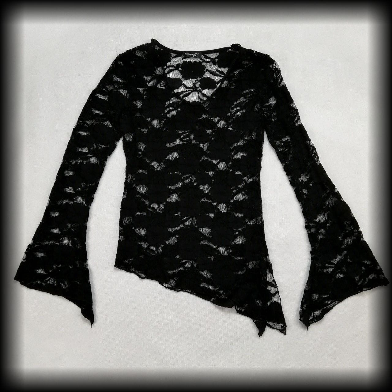 Czarna bluzka z długimi rękawami rozszerzanymi na końcach.