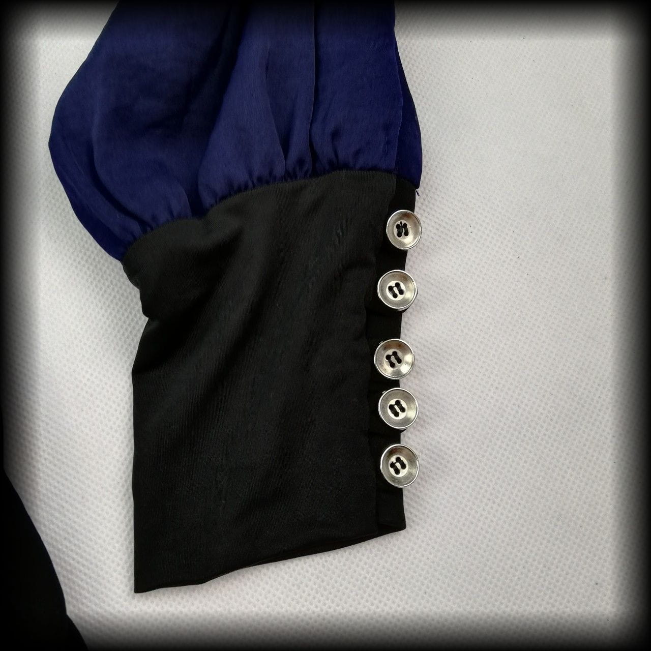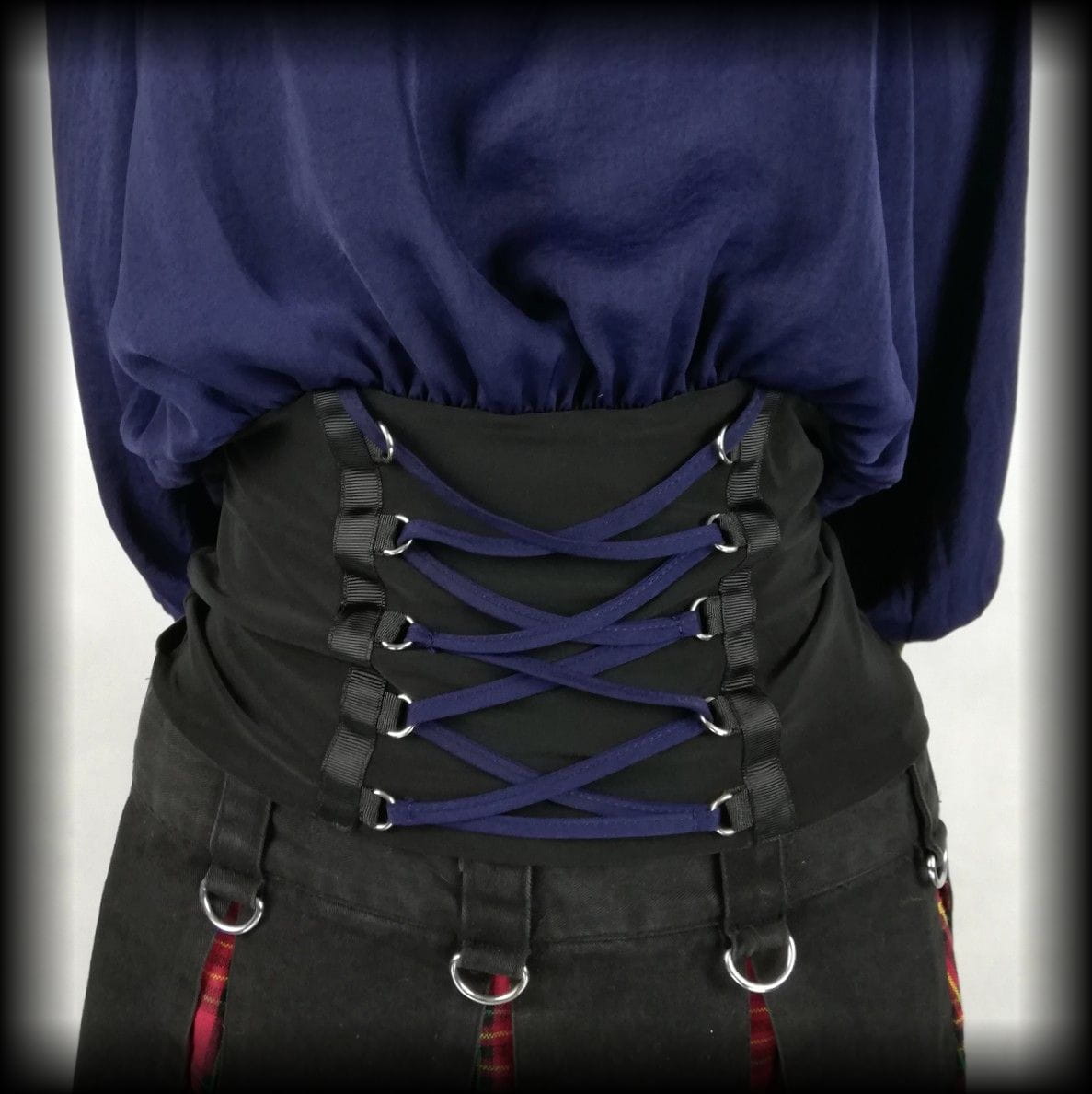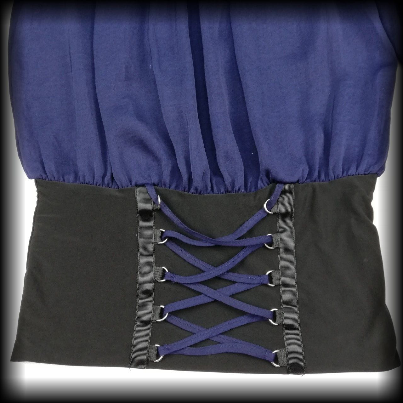 Czarno granatowa bluzka z długimi rękawami. Na brzuchu wiązanie a'la gorset