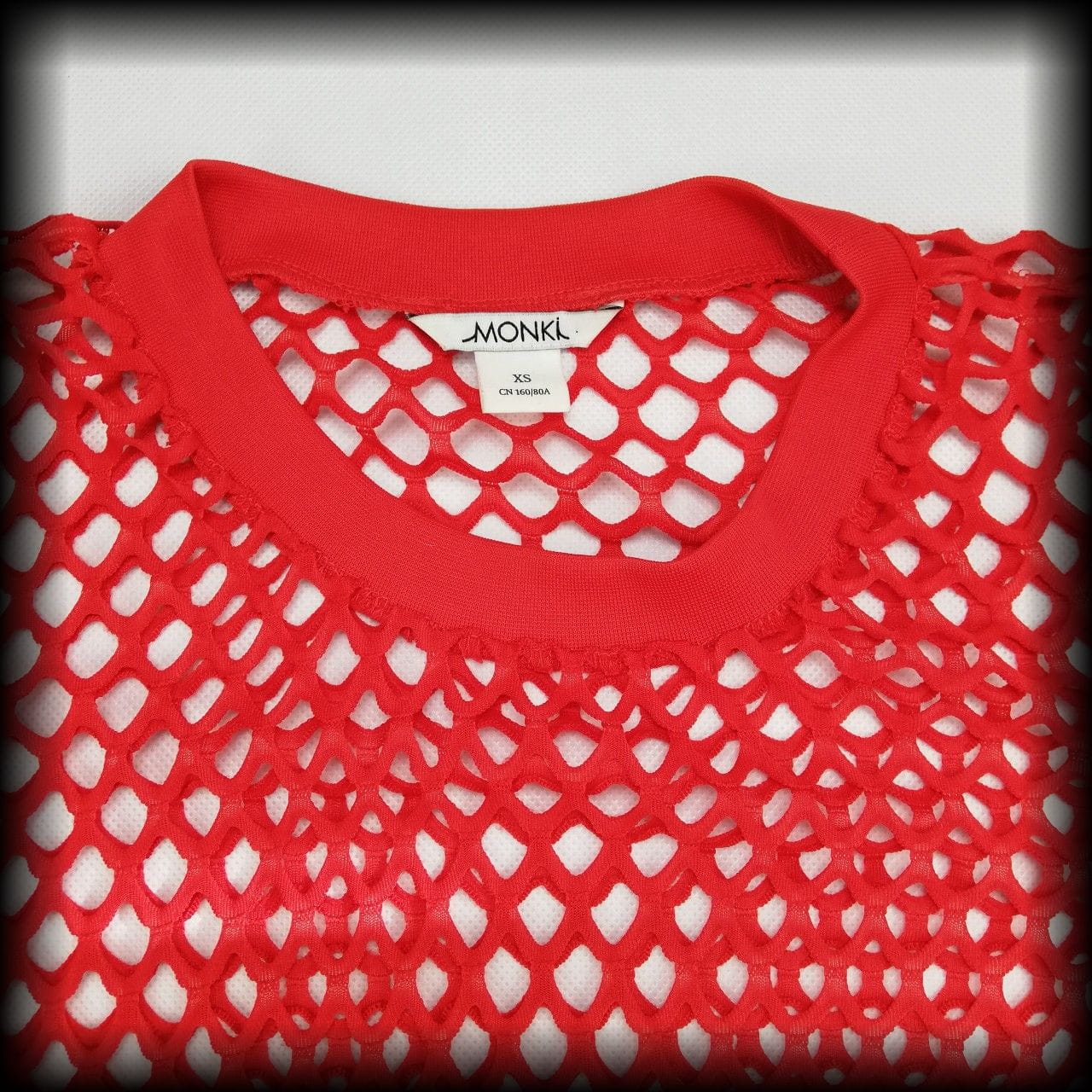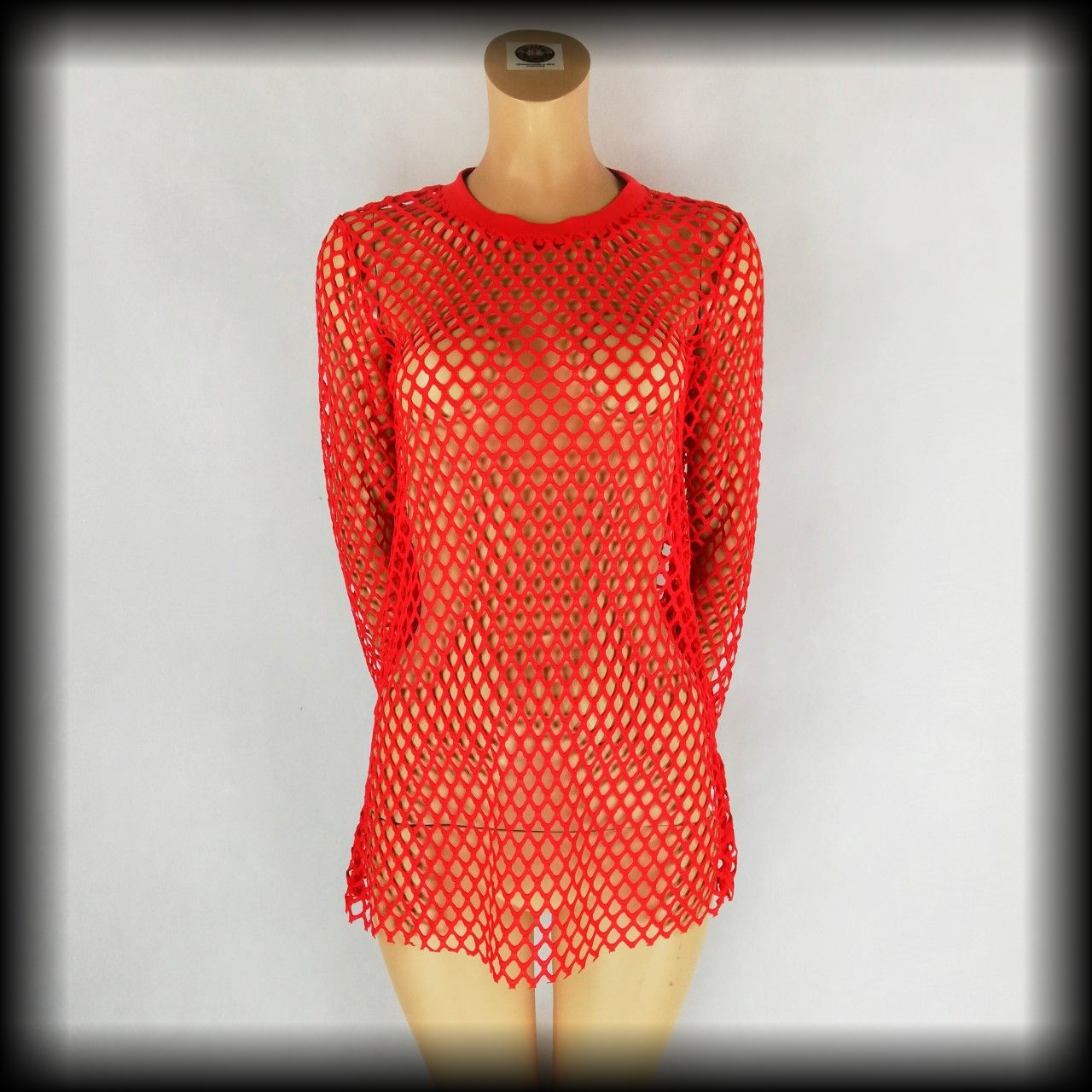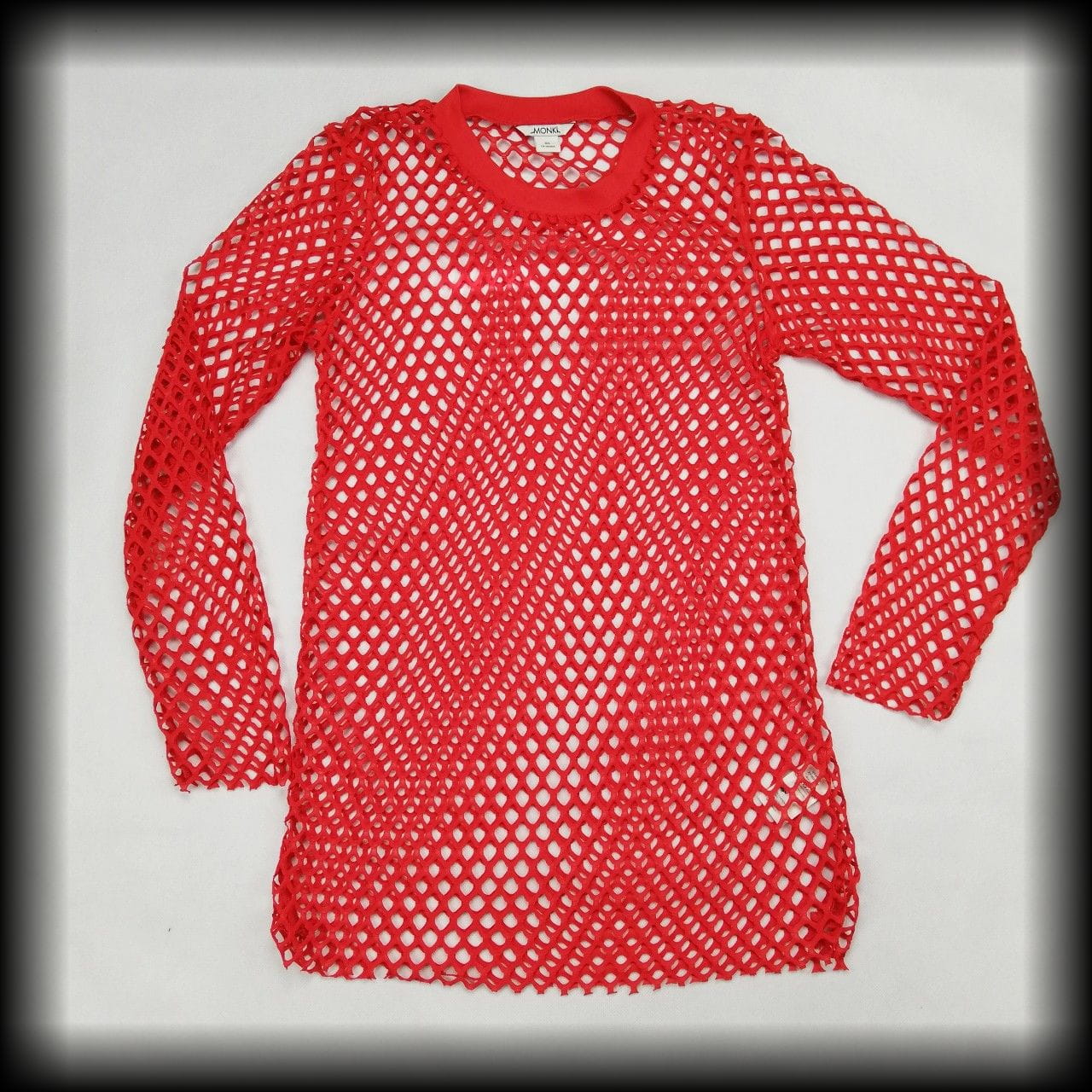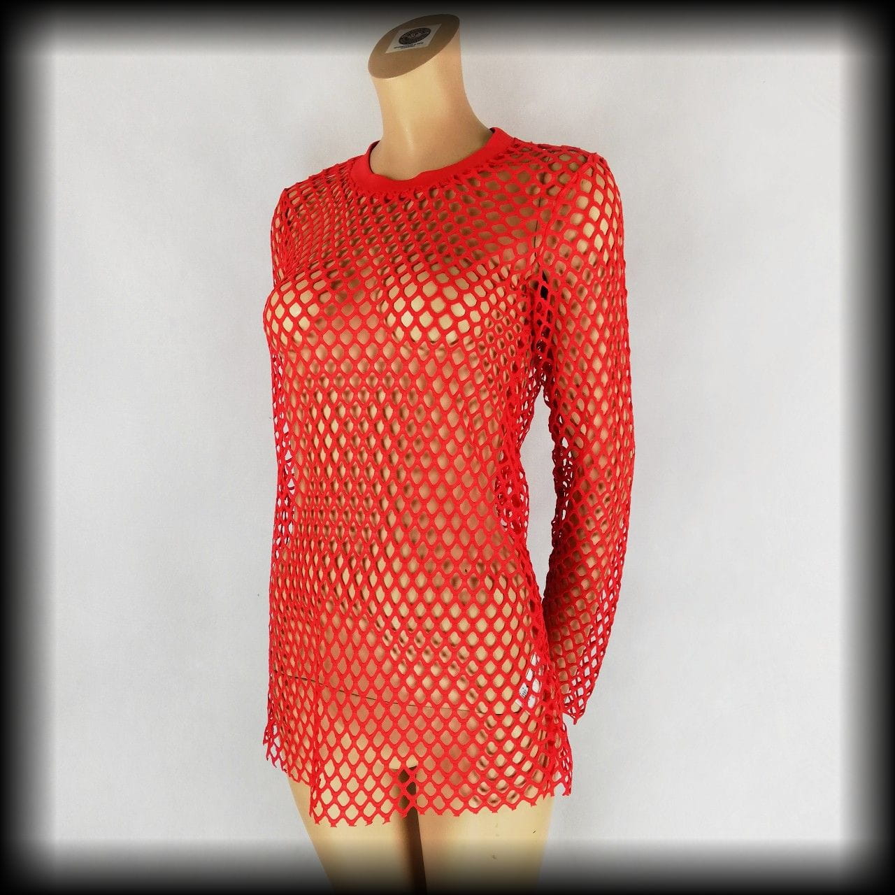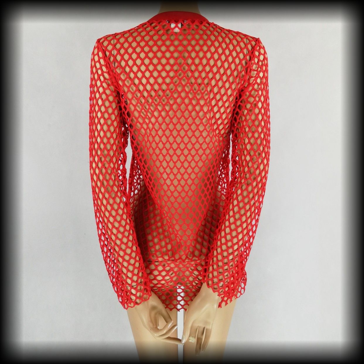Czerwona siateczkowa bluzka z długimi rękawami