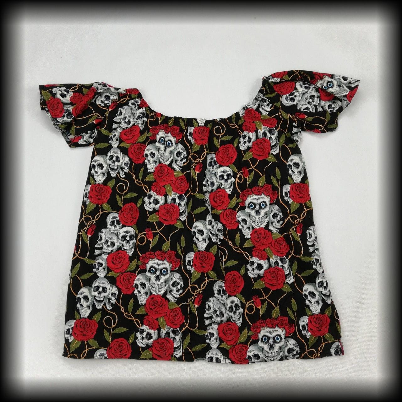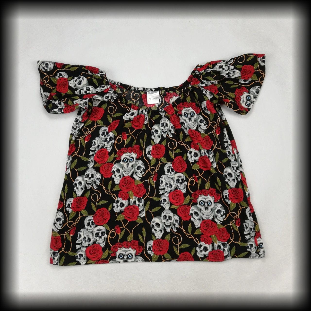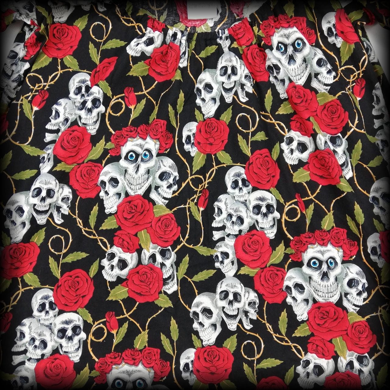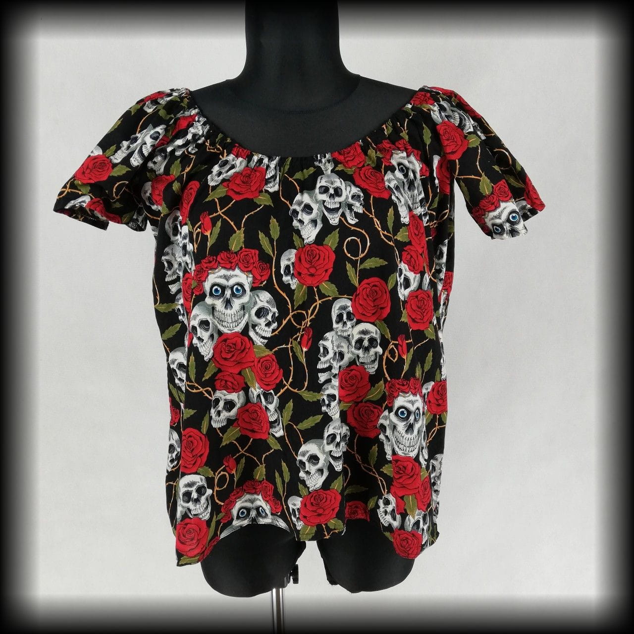 Czarna bluzka oversize w kultowy wzór czaszek z różami