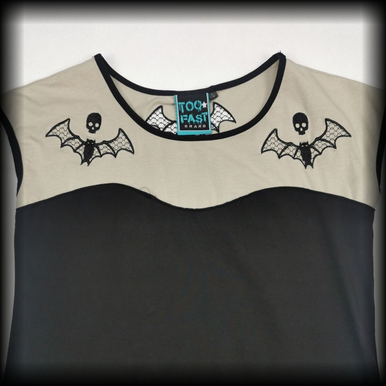 Bluzka psychobilly L Too Fast czaszki i nietoperze