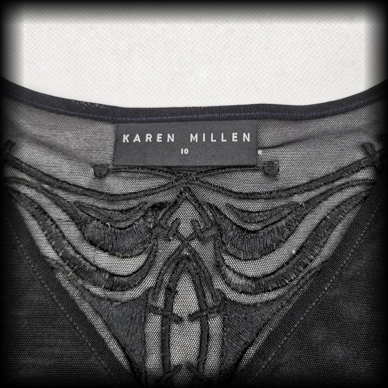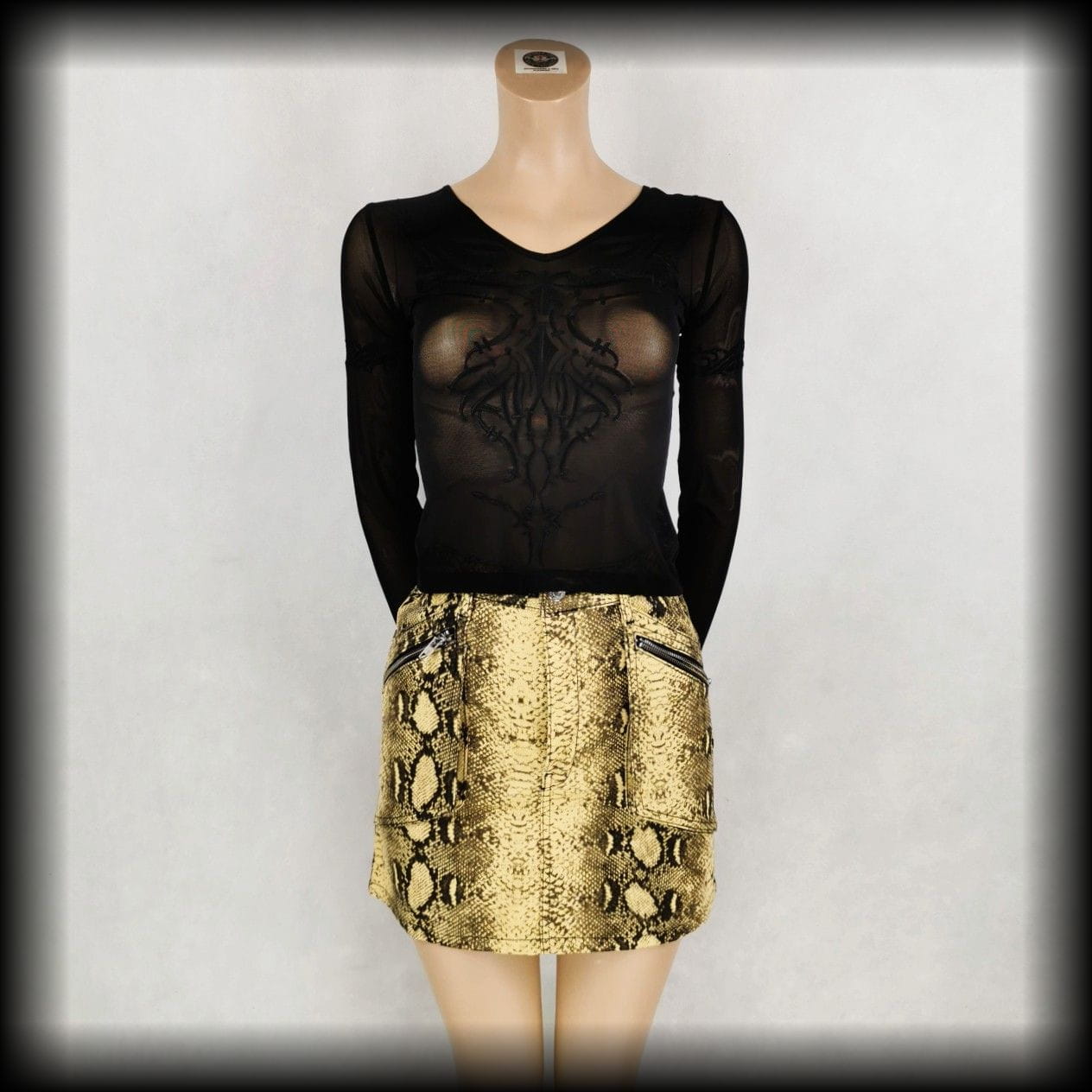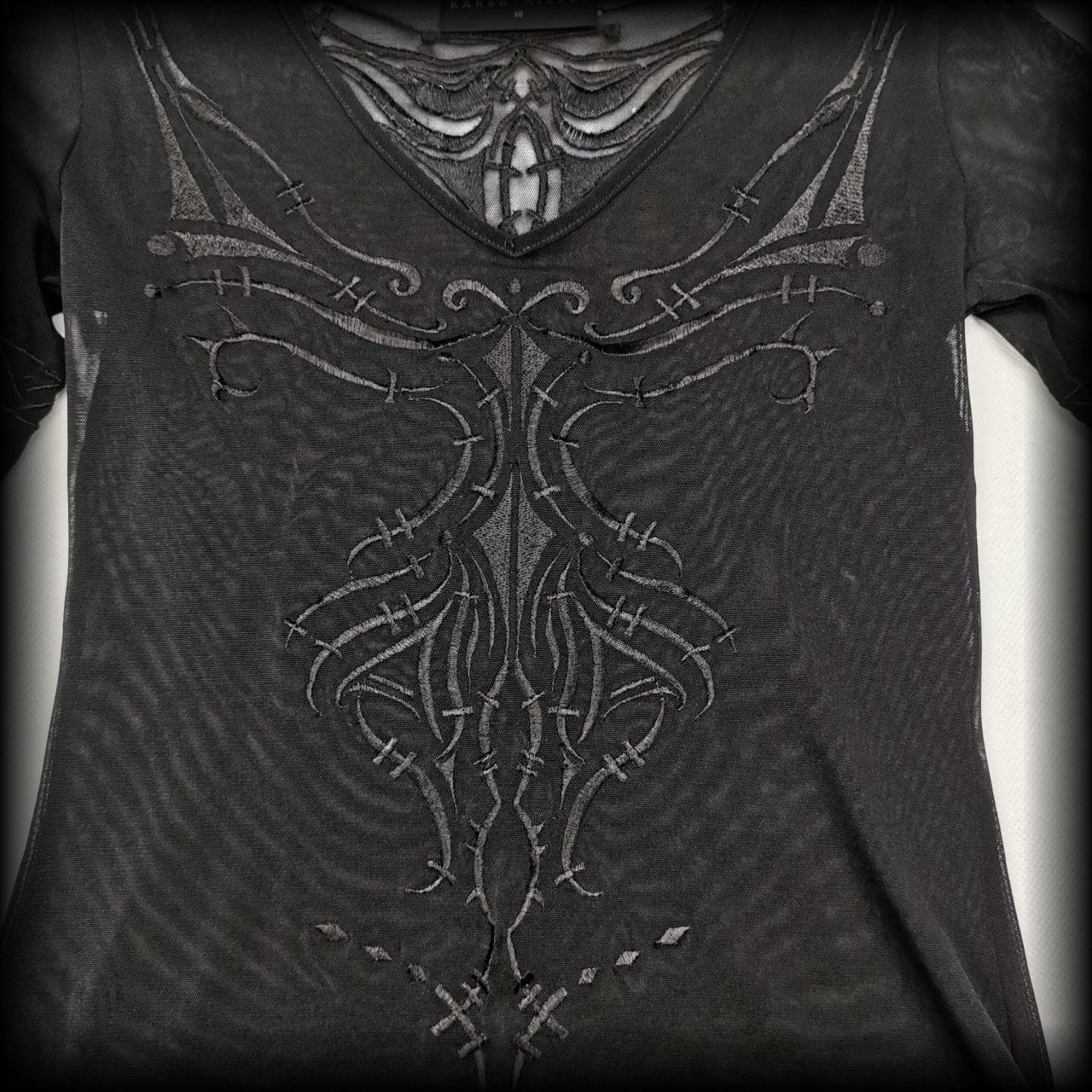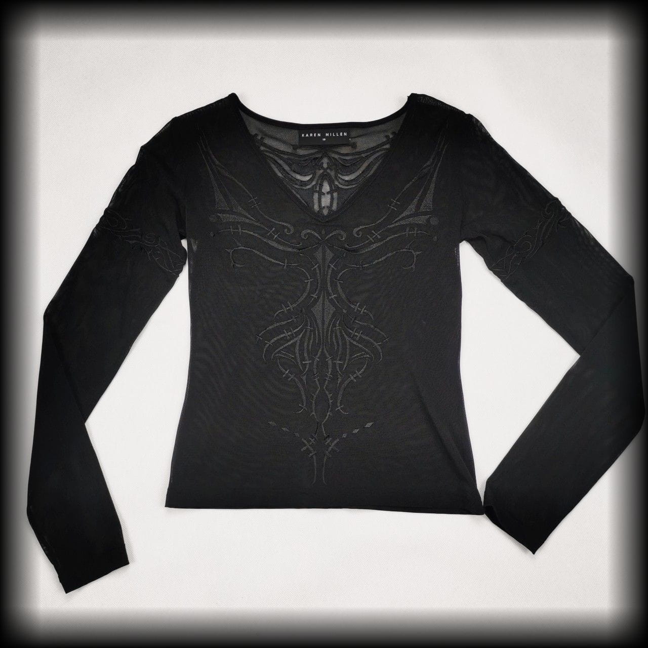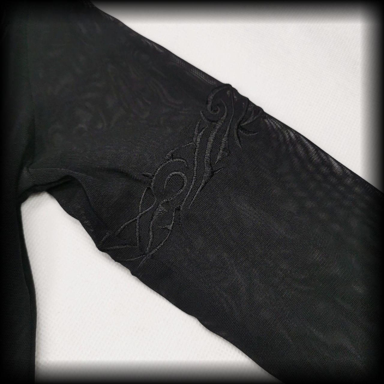 Transparentna czarna bluzka z długimi rękawami z wyszytymi wzorami a'la tribale
