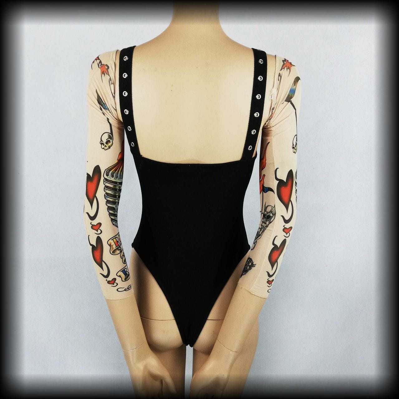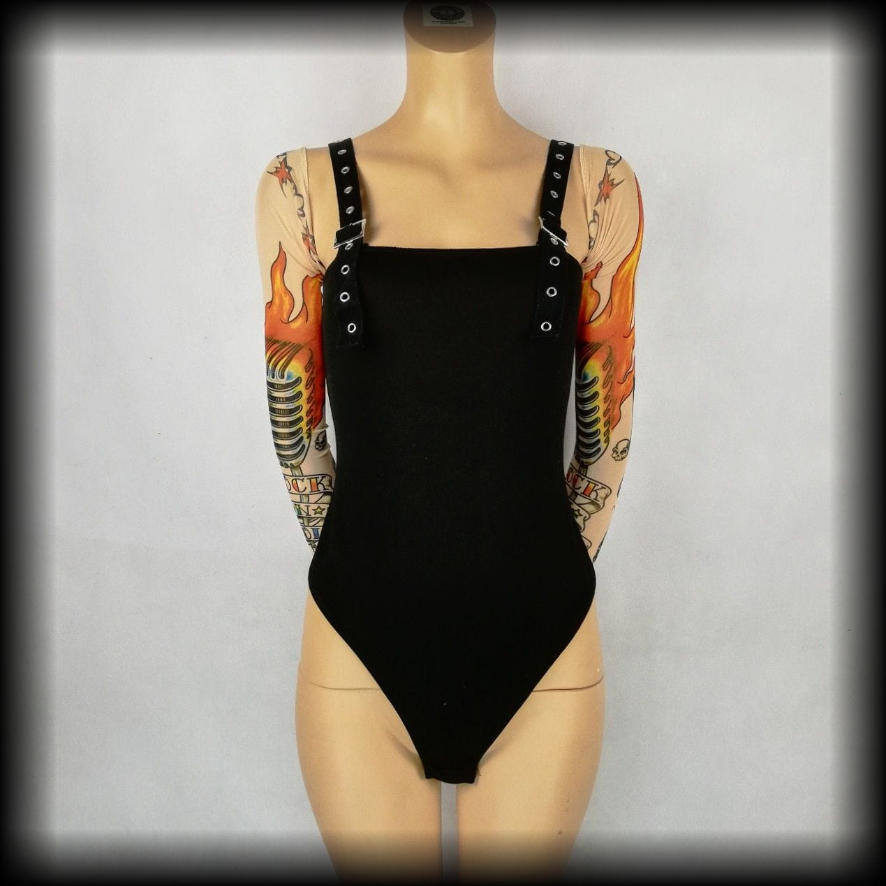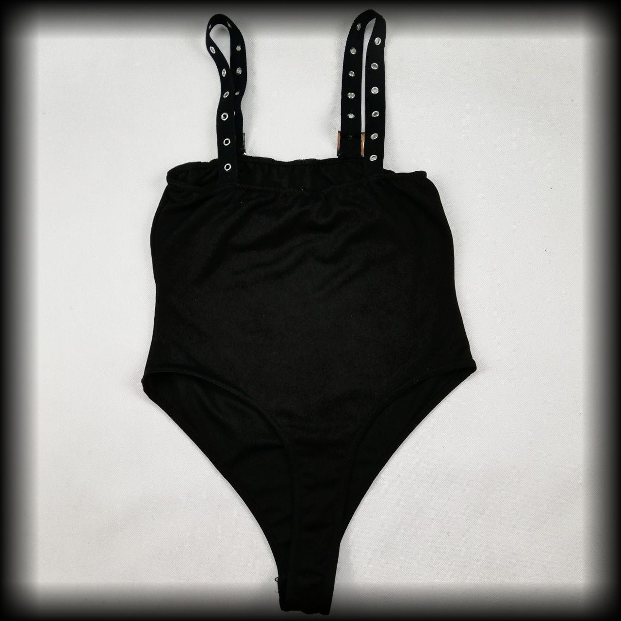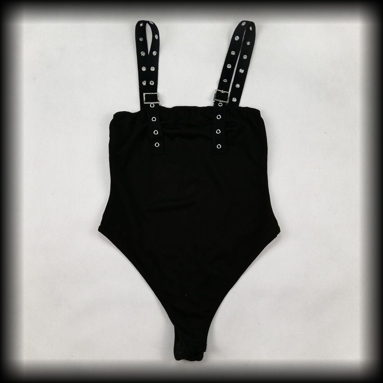Czarne body z pazurem. Na ramiączkach z nitami i klamrami