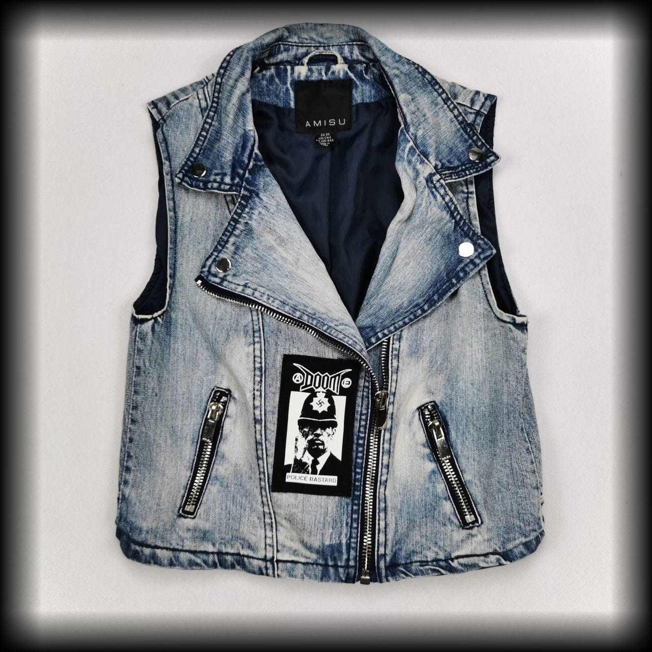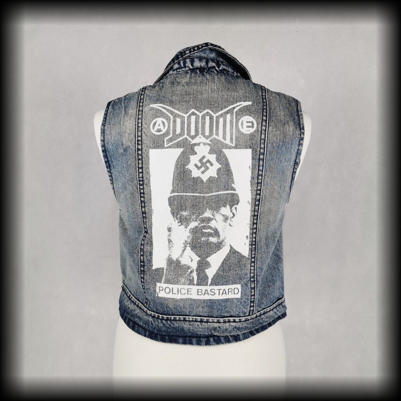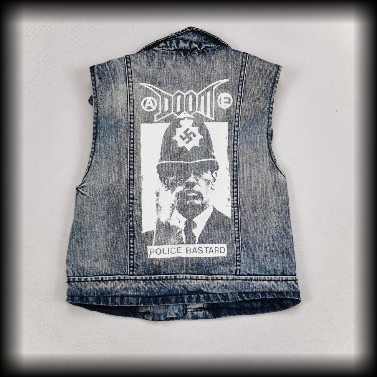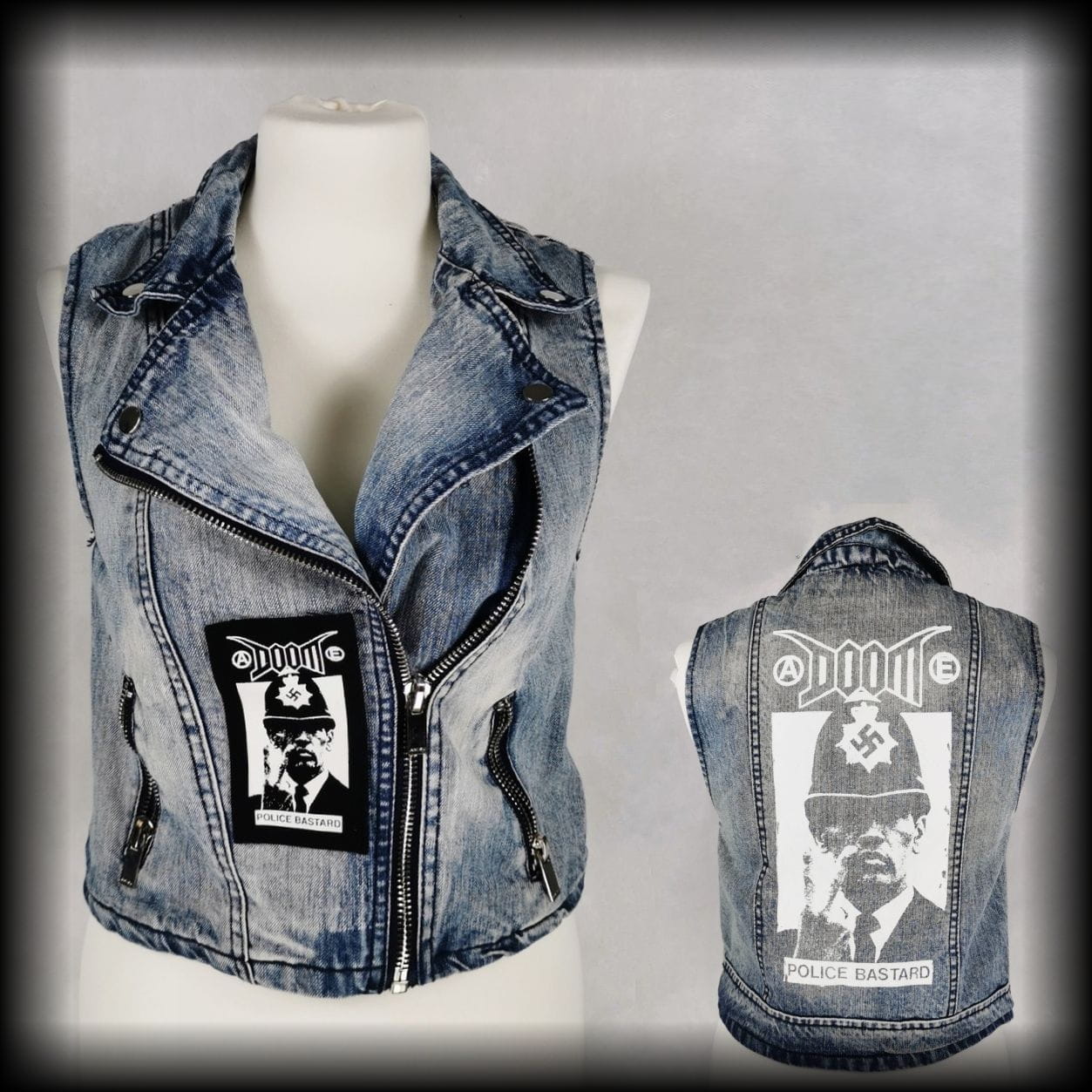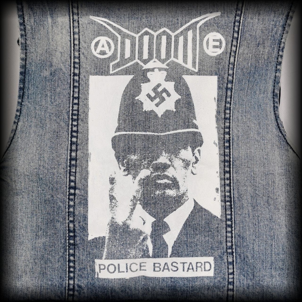 DIY - z tyłu nadruk Doom police bastard, z przodu naszywka