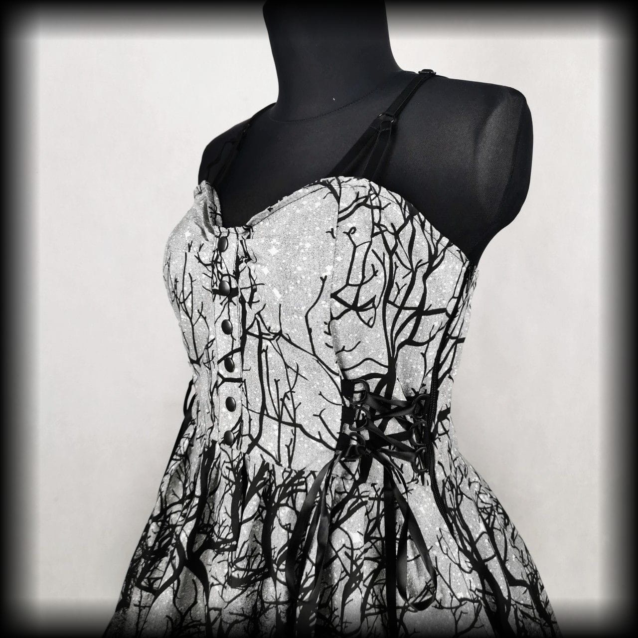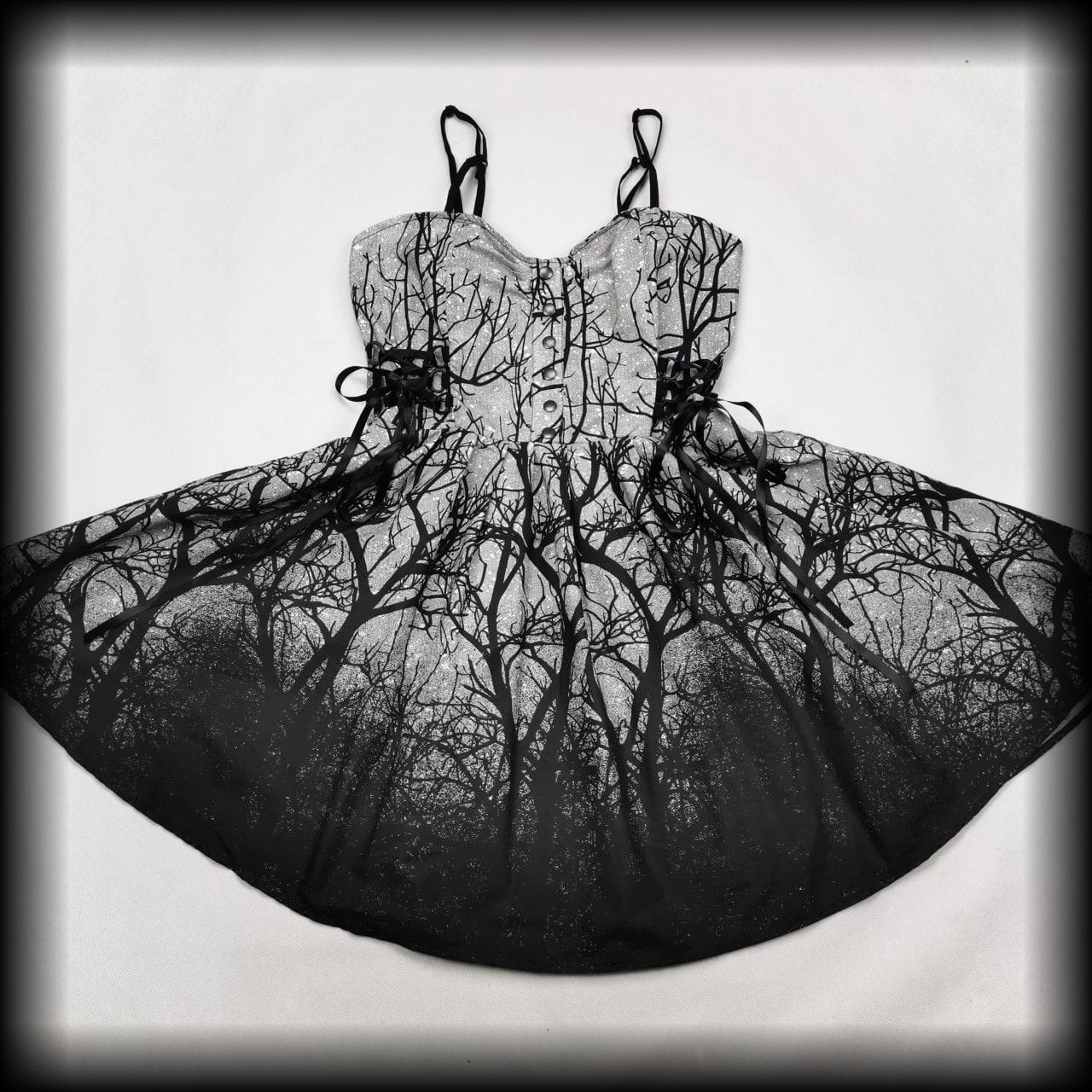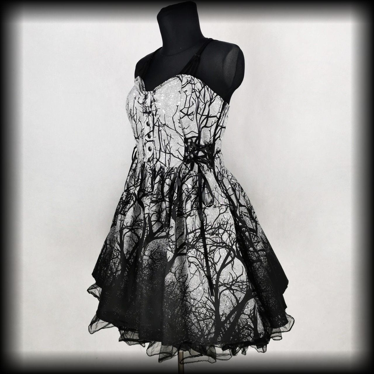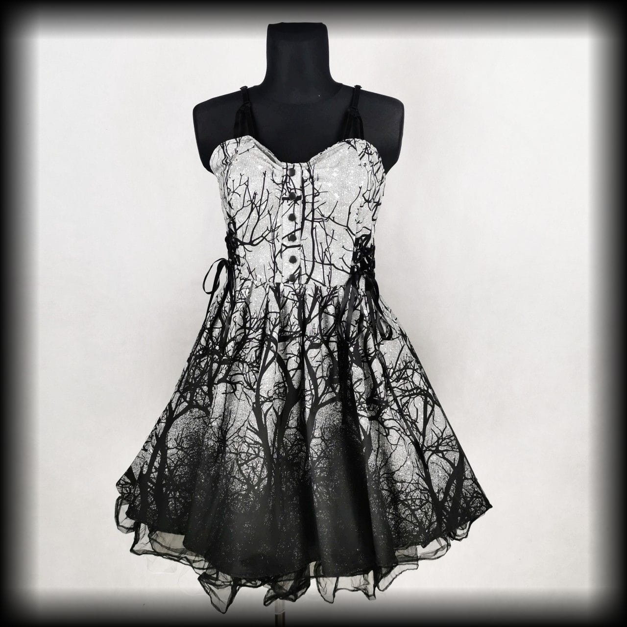 Rozkloszowana alternatywna sukienka mroczny las
