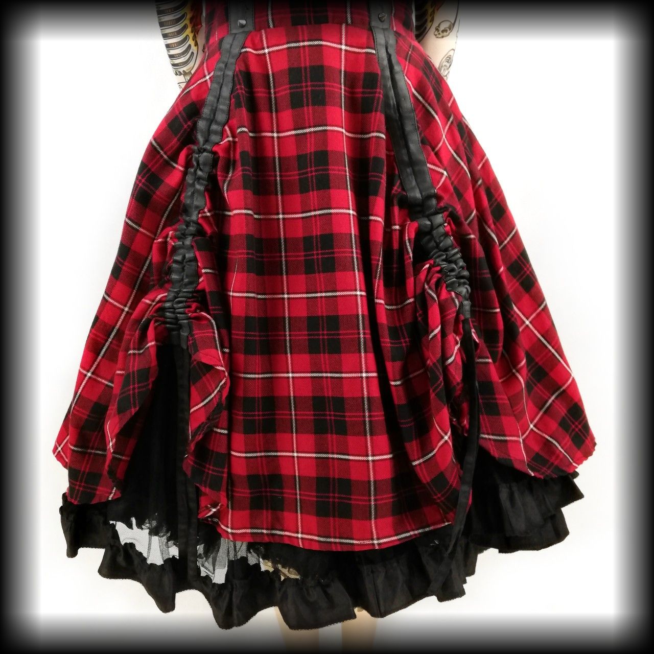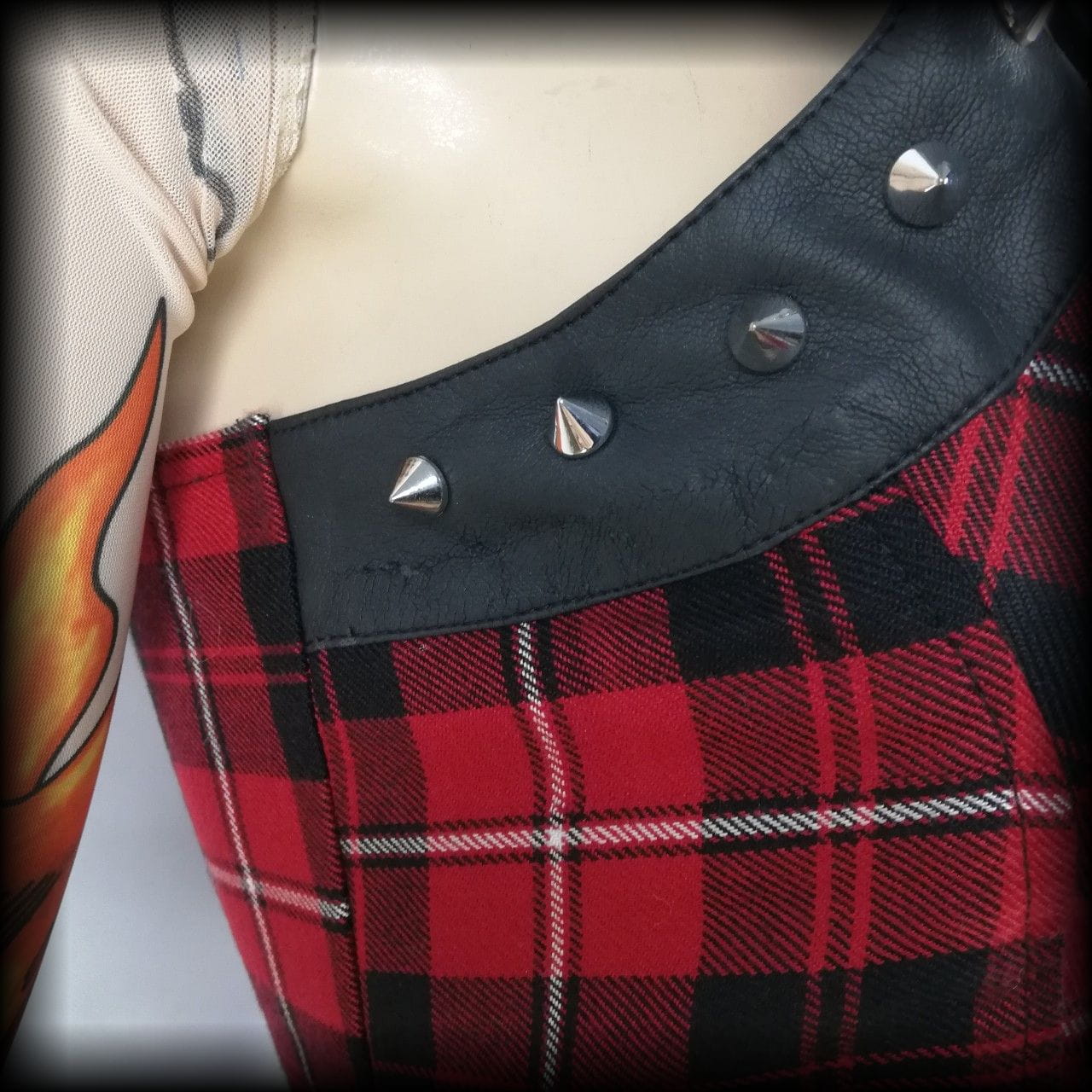 Rozkloszowana sukienka alternatywna w kratę z falbanami i ćwiekami
