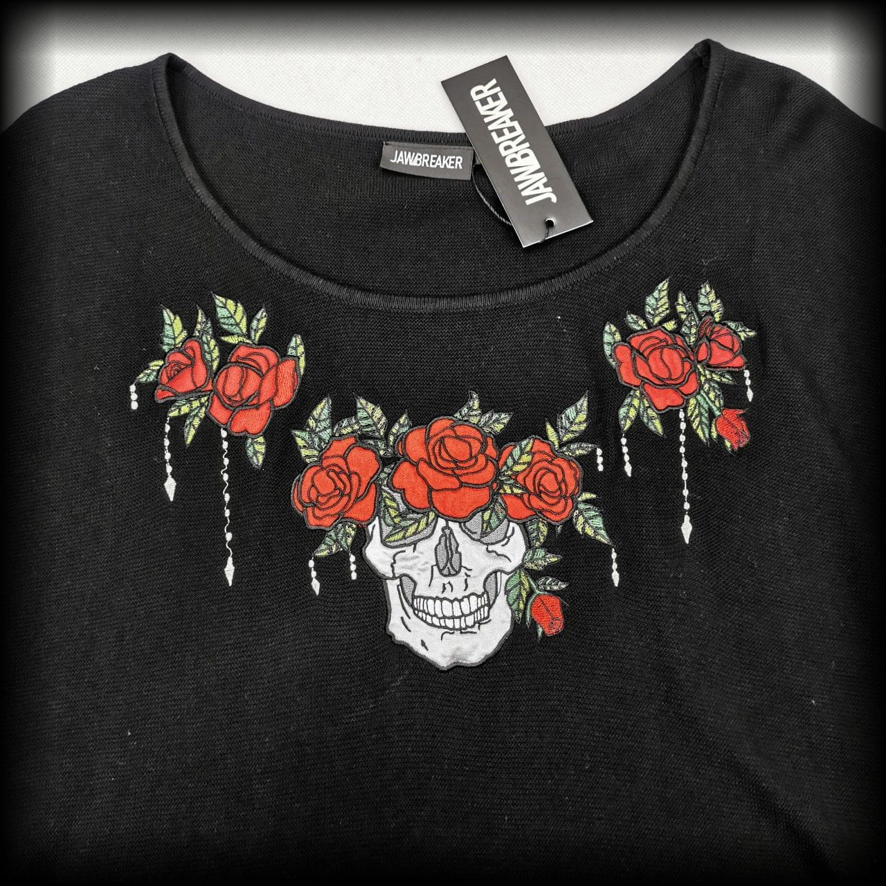 Sweter Jawbreaker L czaszka i róże goth punk NOWY