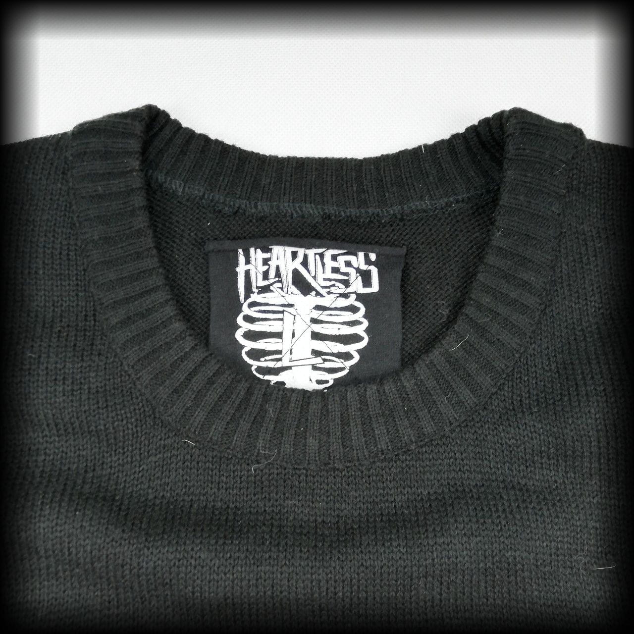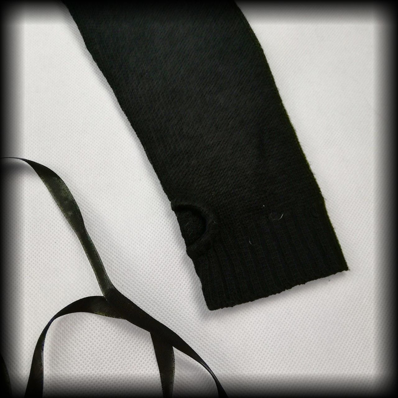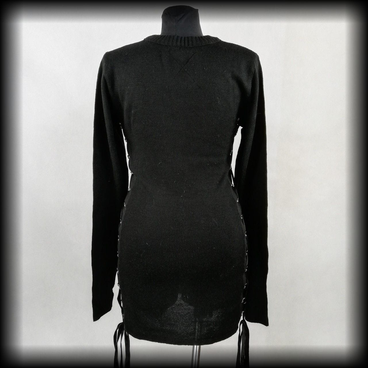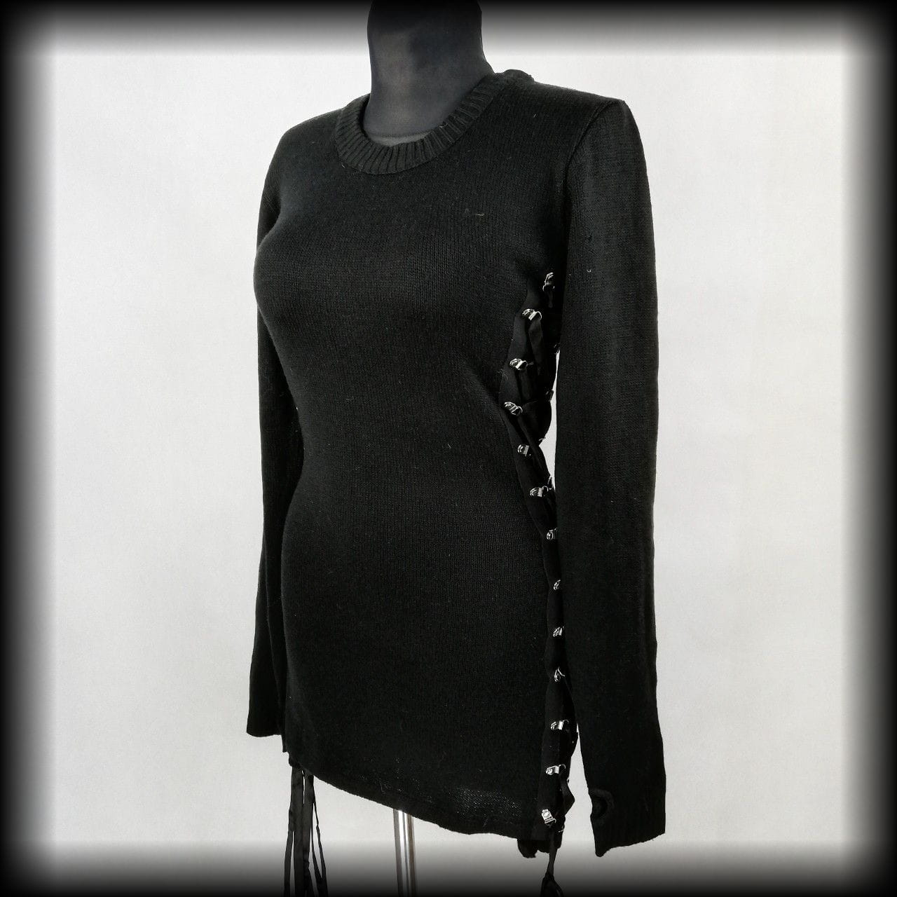 Czarny długi sweter. Po bokach wiązania gorsetowe
