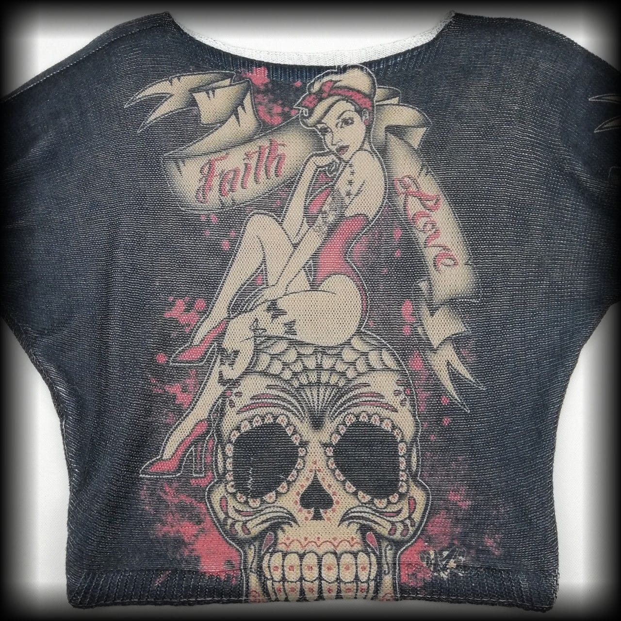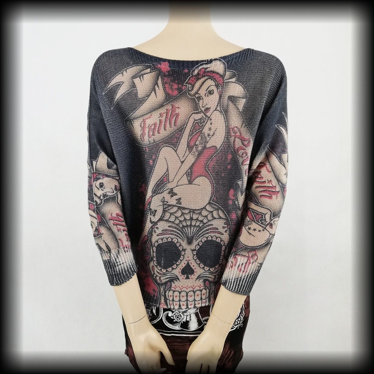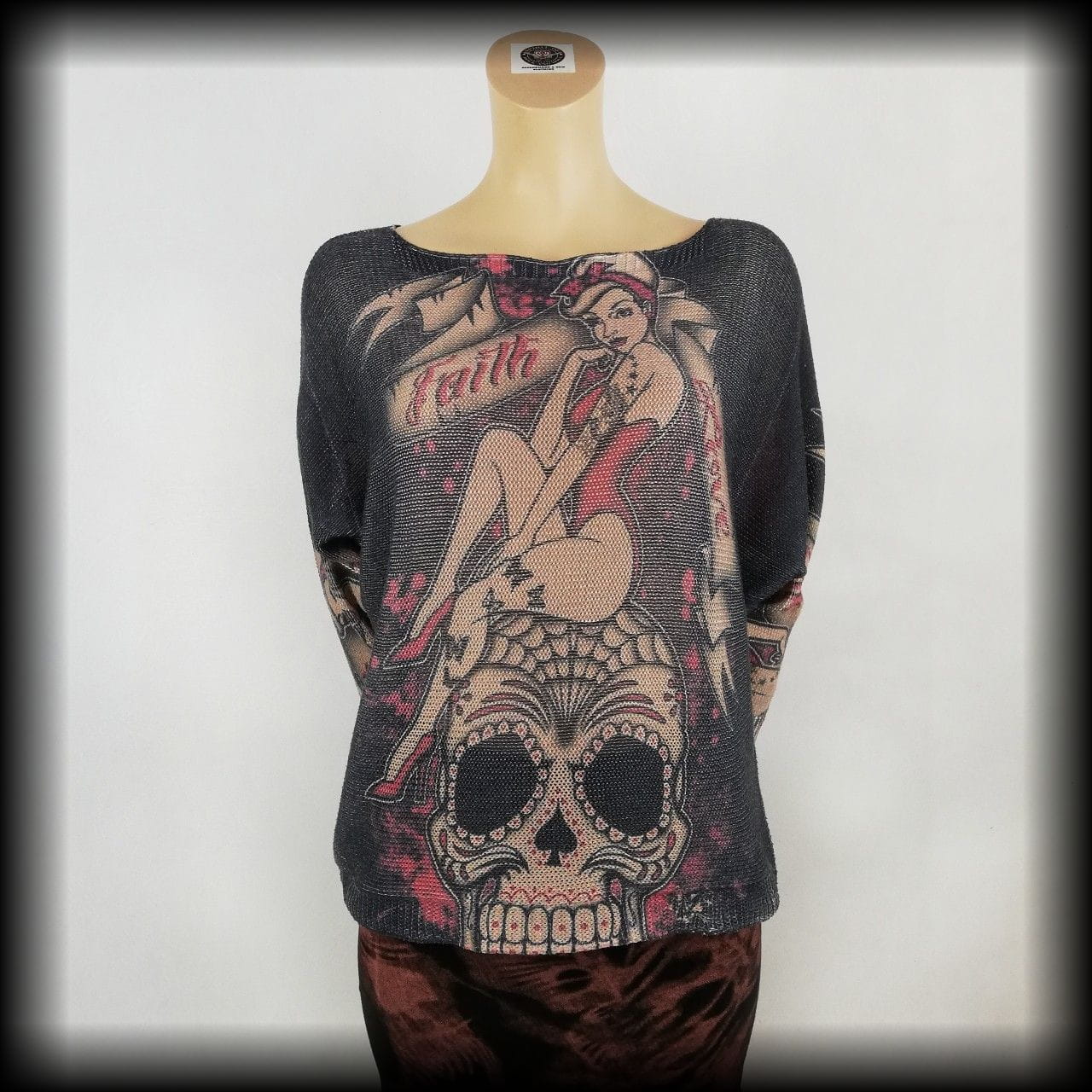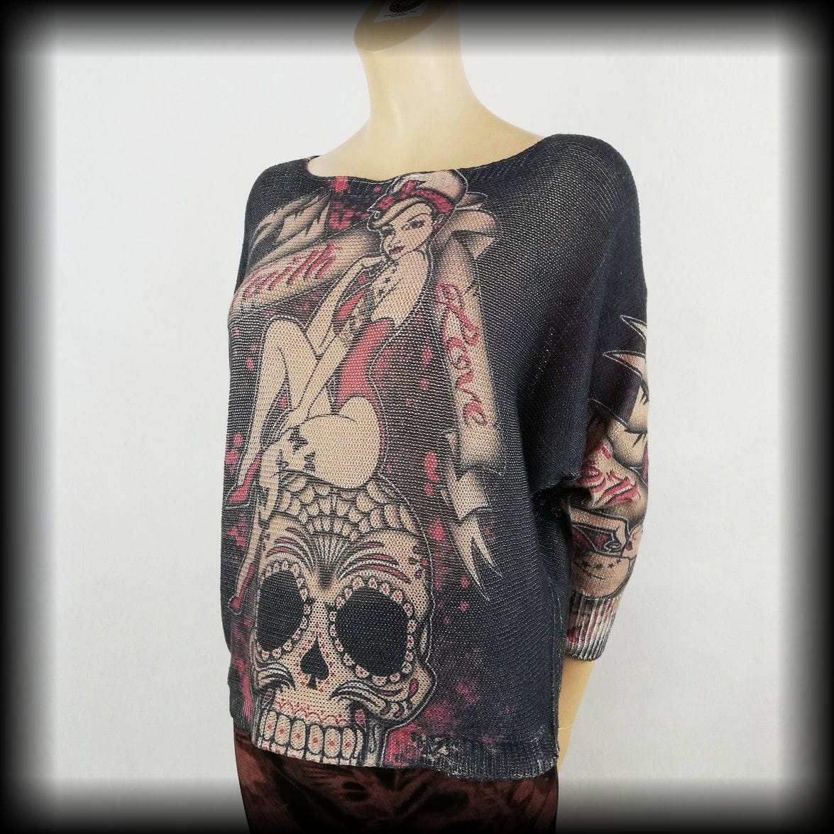 Sweterek Pin Up z czachą M-XL krój nietoperz