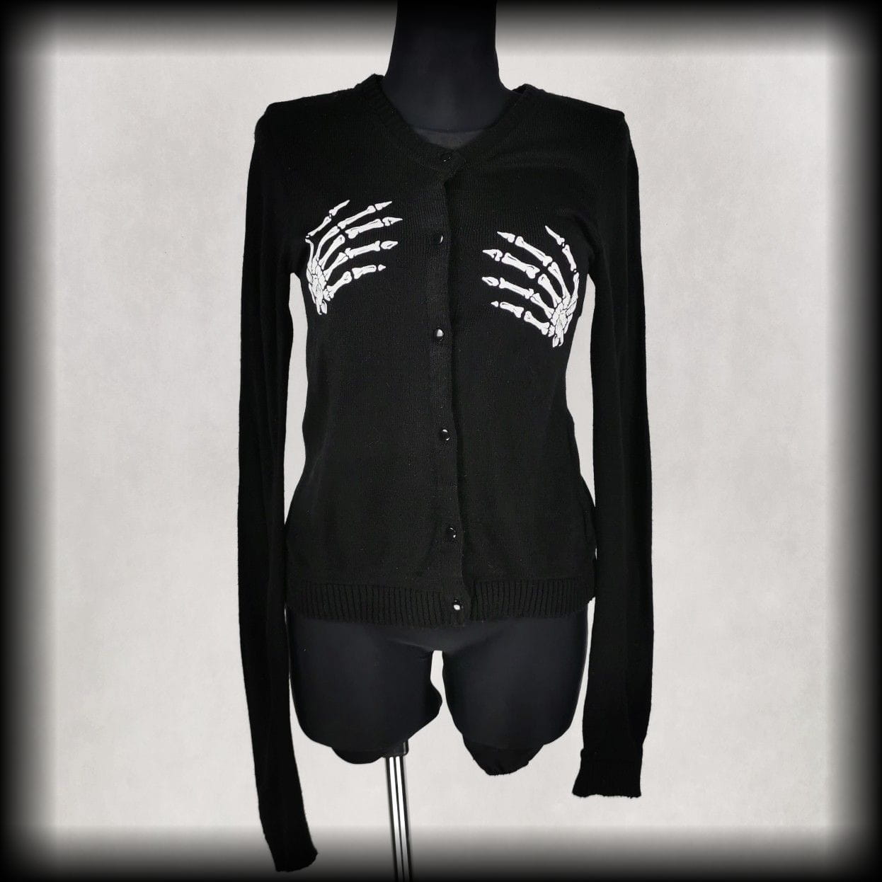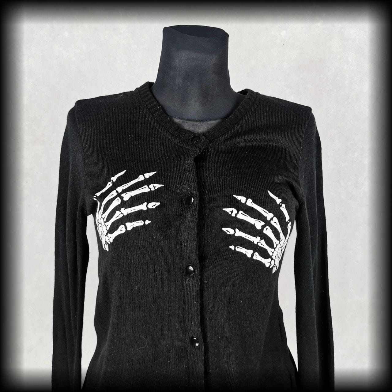 Czarny sweterek z wyszytymi aplikacjami Trupimi łapkami z przodu