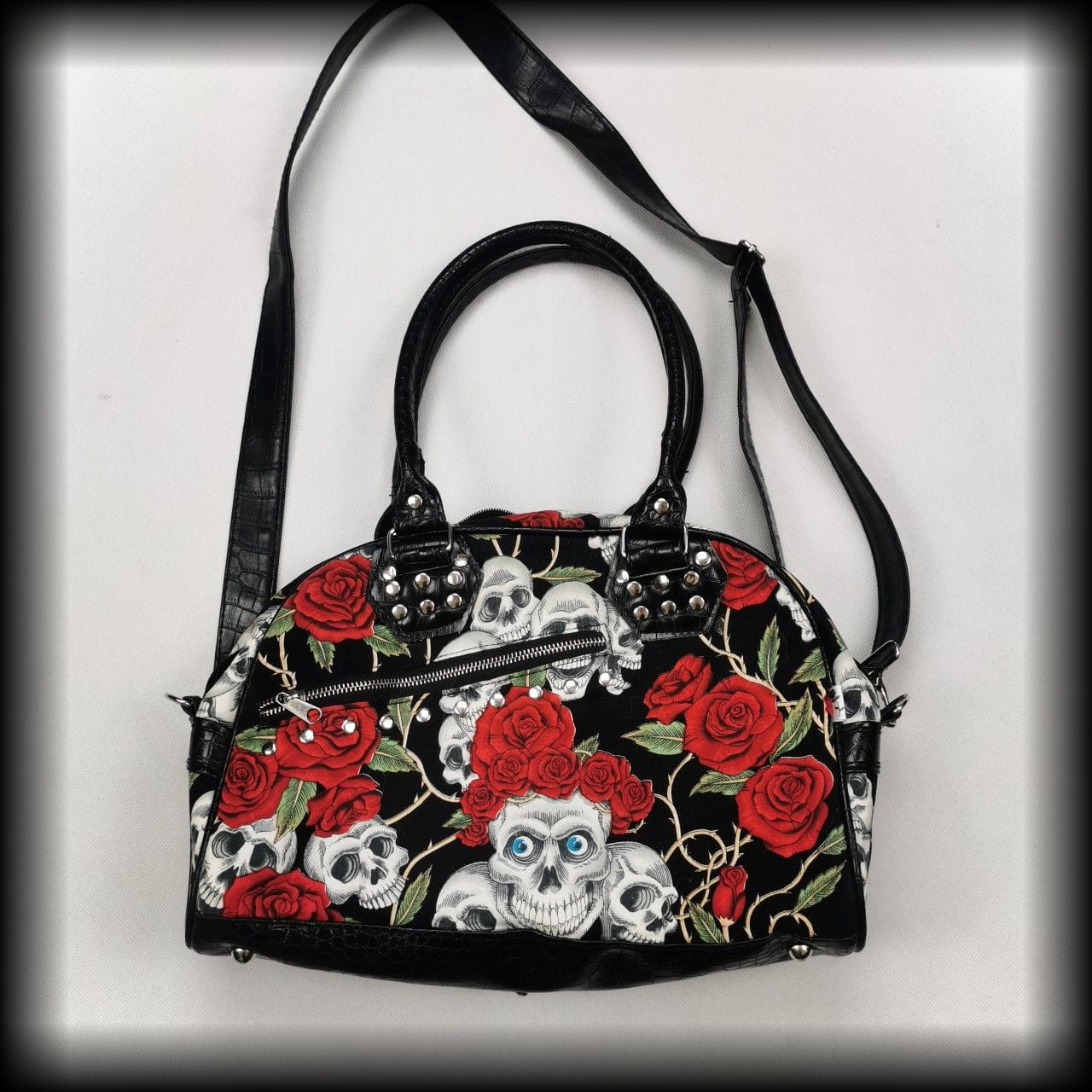 Torba w czaszki i róże, którą można nosić w ręku lub na ramię
