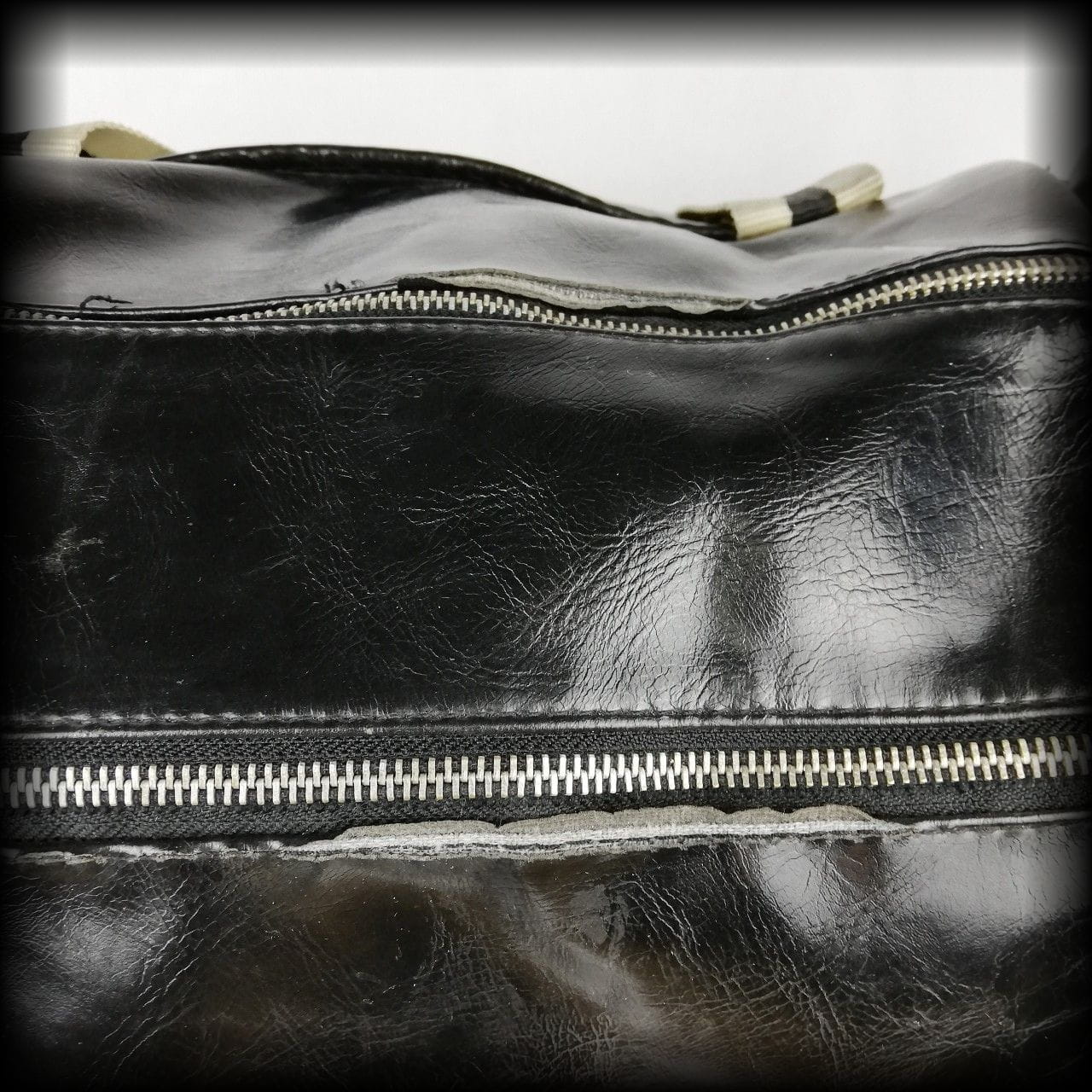 Torba używana w stanie dostatecznym - paski mocno zabrudzone, w kilku miejscach na eko skórze lekkie przybrudzenia oraz pęknięcia na szwach przy zamku. Torba wymaga odświeżenia podszewki - z pewnością była w niej noszona odzież sportowa.