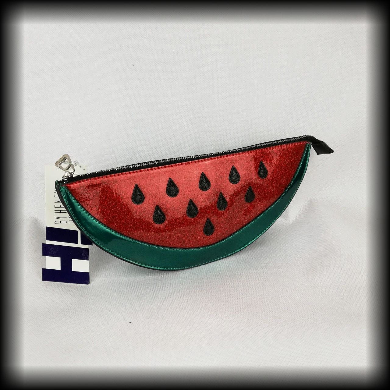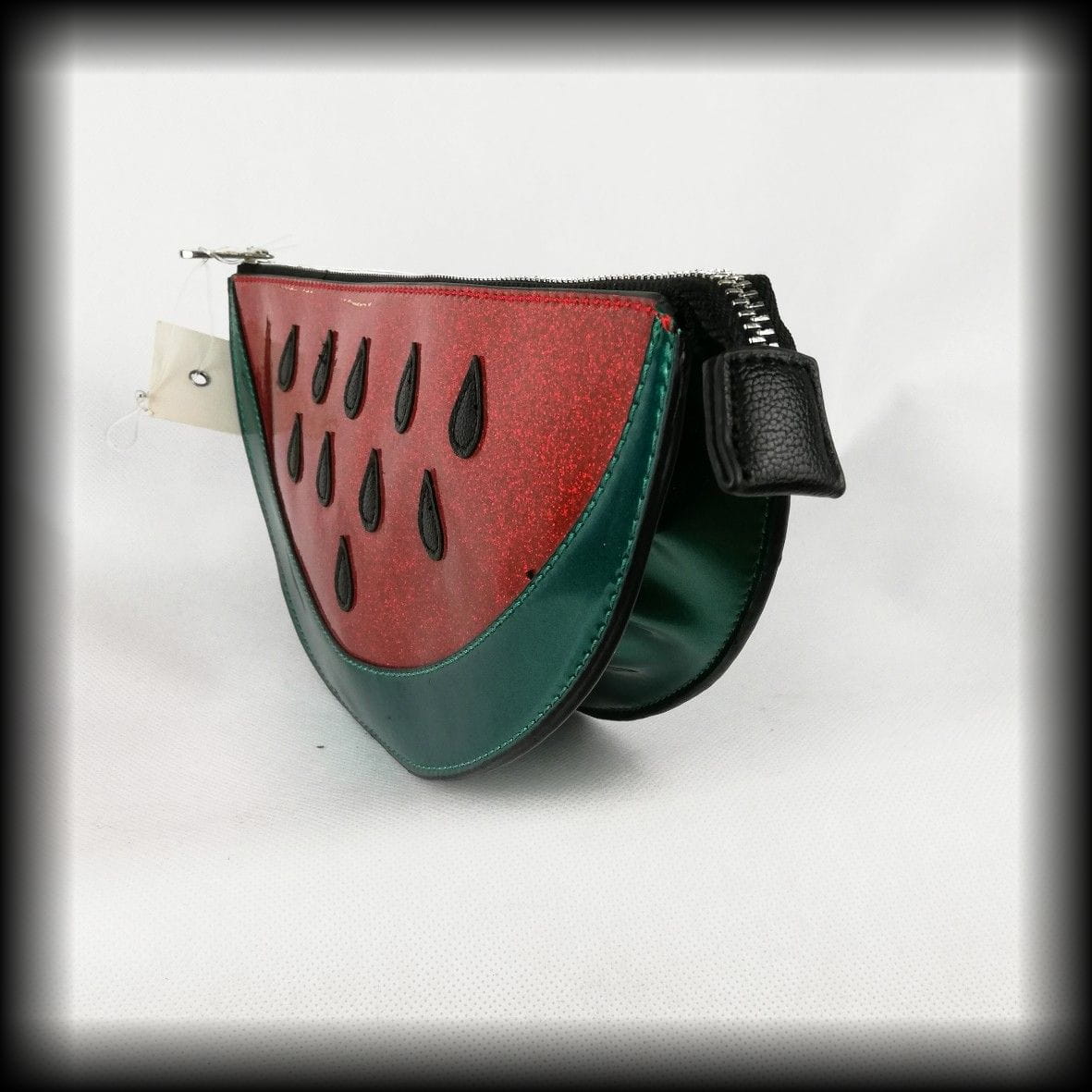 Błyszcząca zielono czerwona z czarnymi pestkami