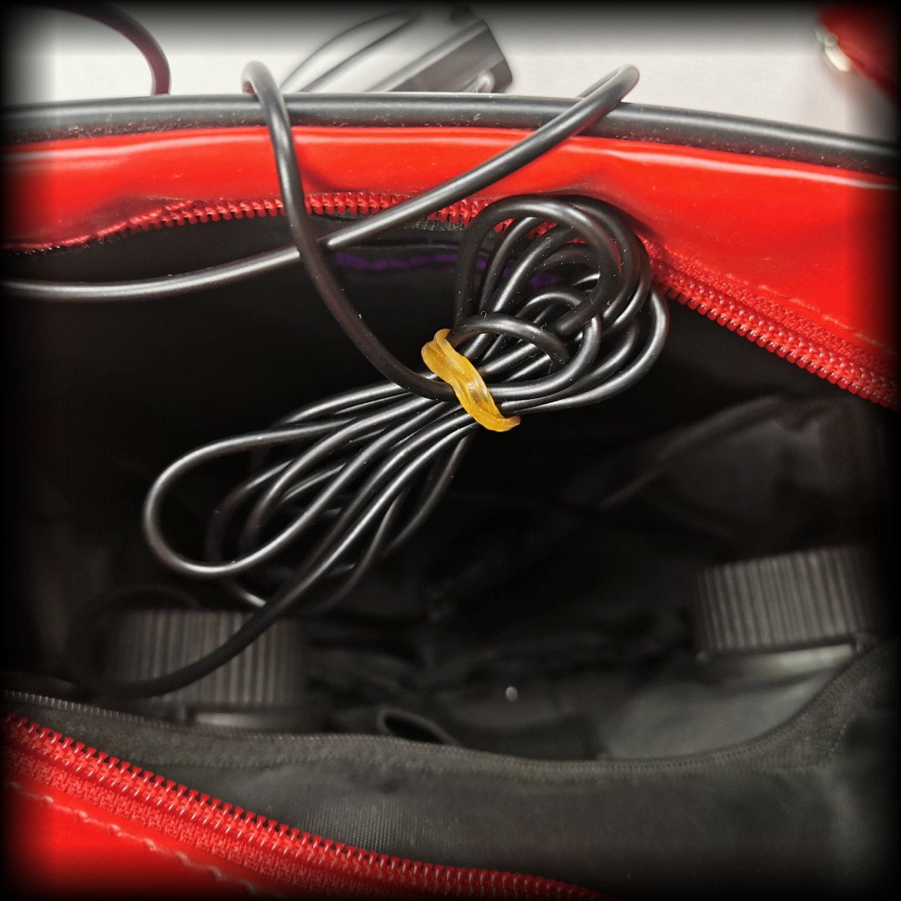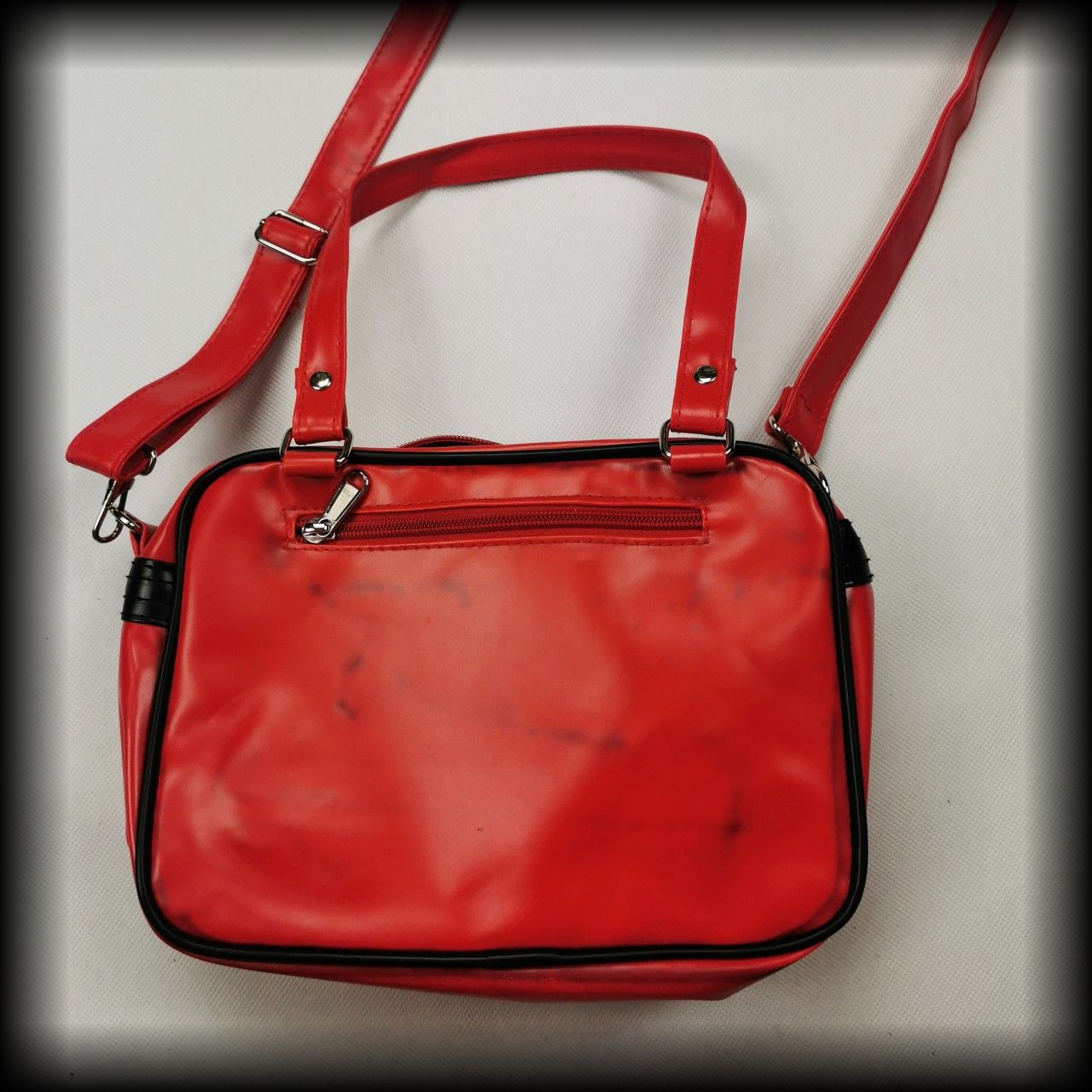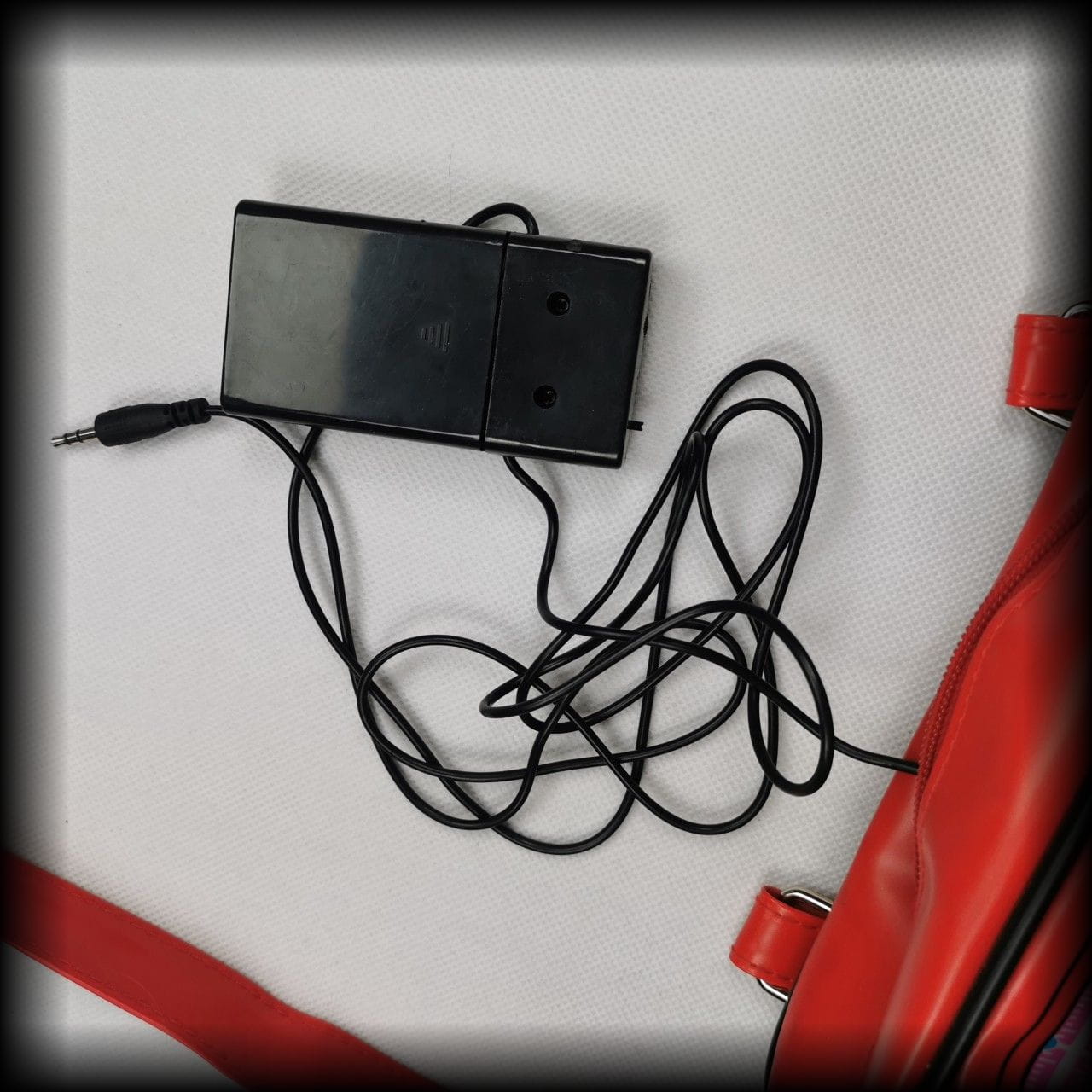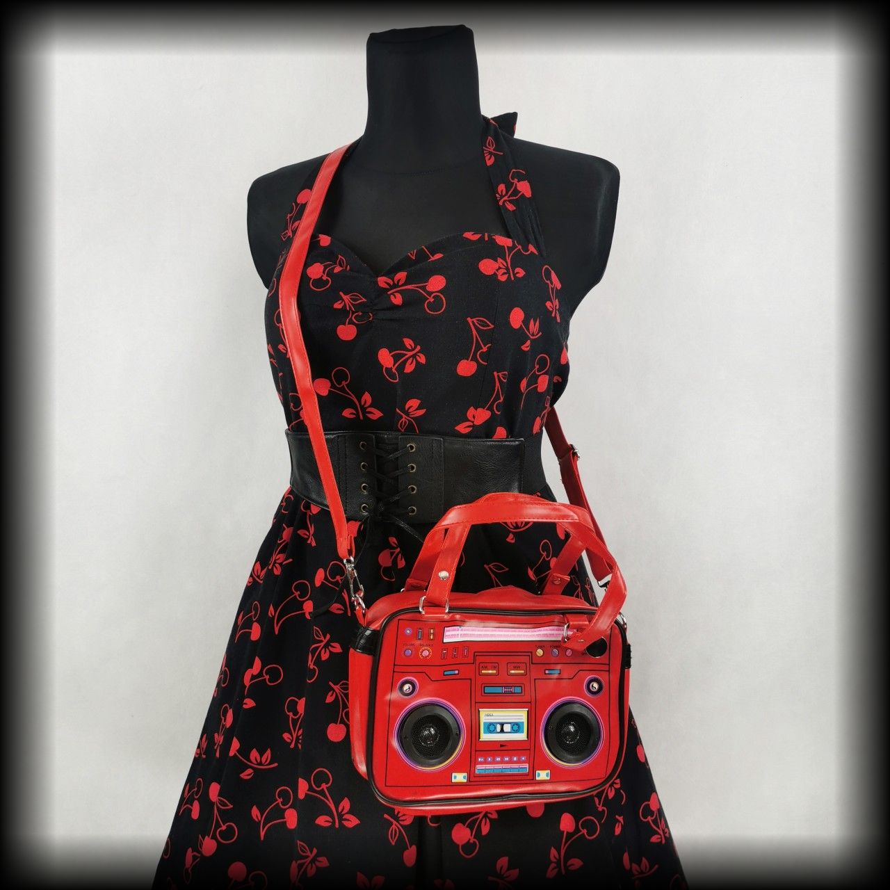 Czerwona torebka jak old schoolowy magnetofon. Posiada wbudowane głośniki (nie sprawdzone czy działają)
