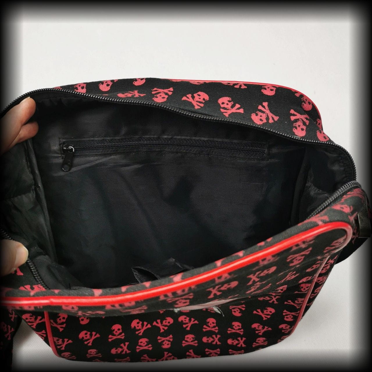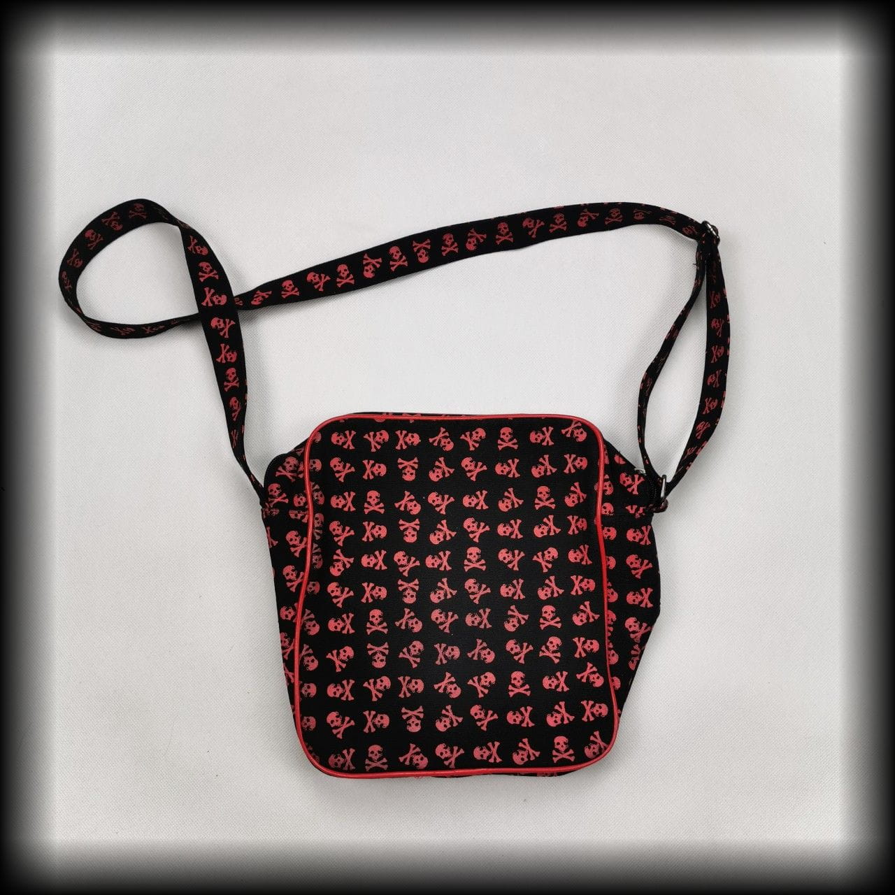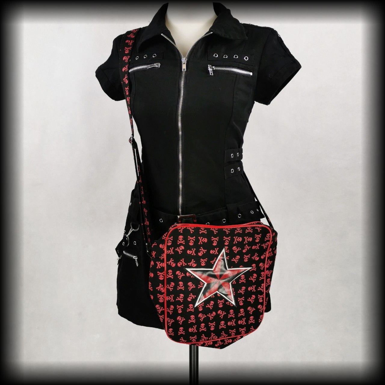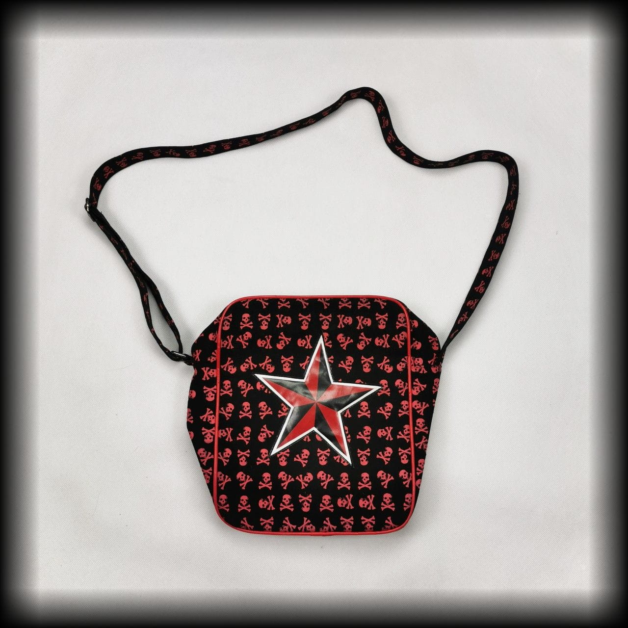 Czarna torebka w czerwony print w czaszki z dużą czarno czerwoną gwiazdą