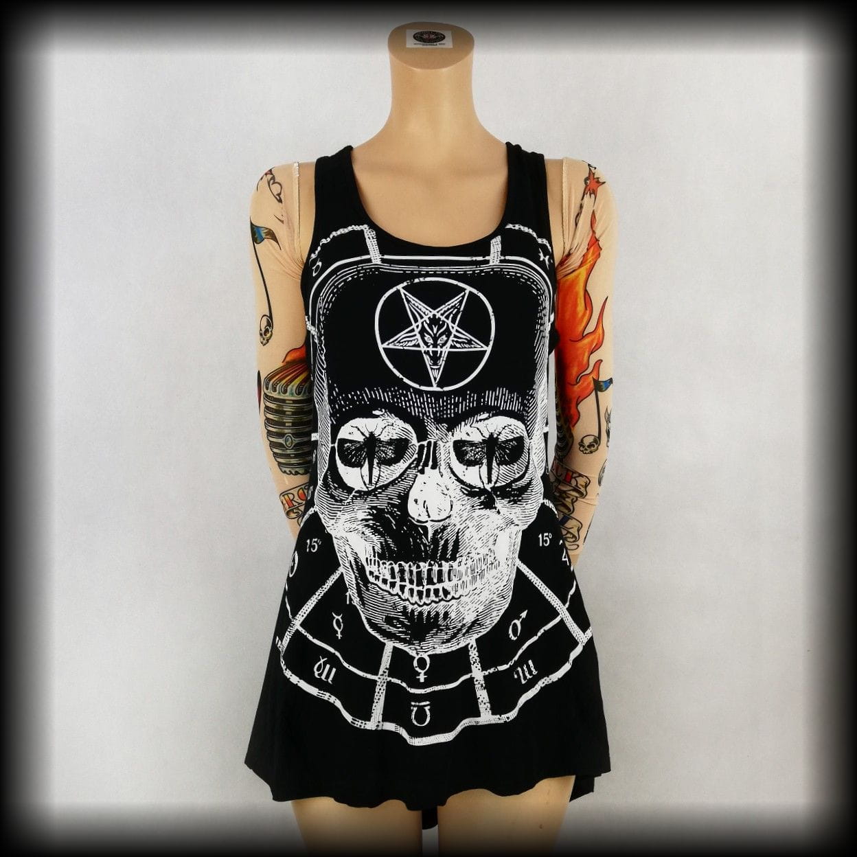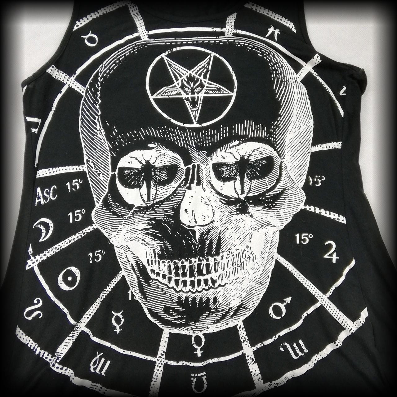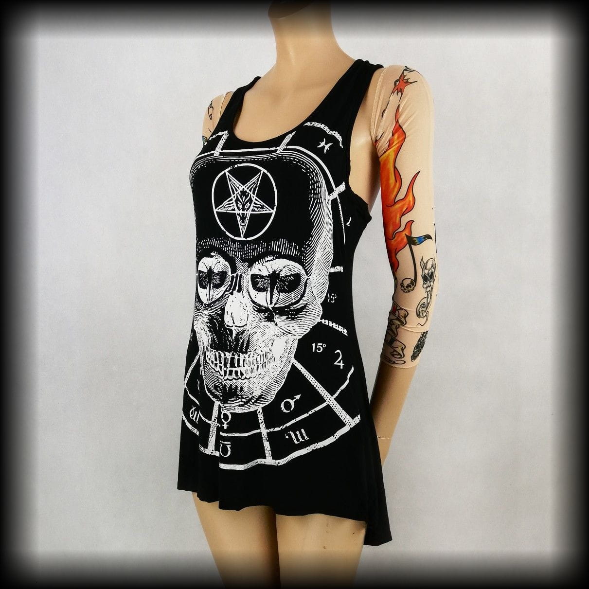 Czarna tunika/ dłuższa koszulka z czaszką i pentagramami