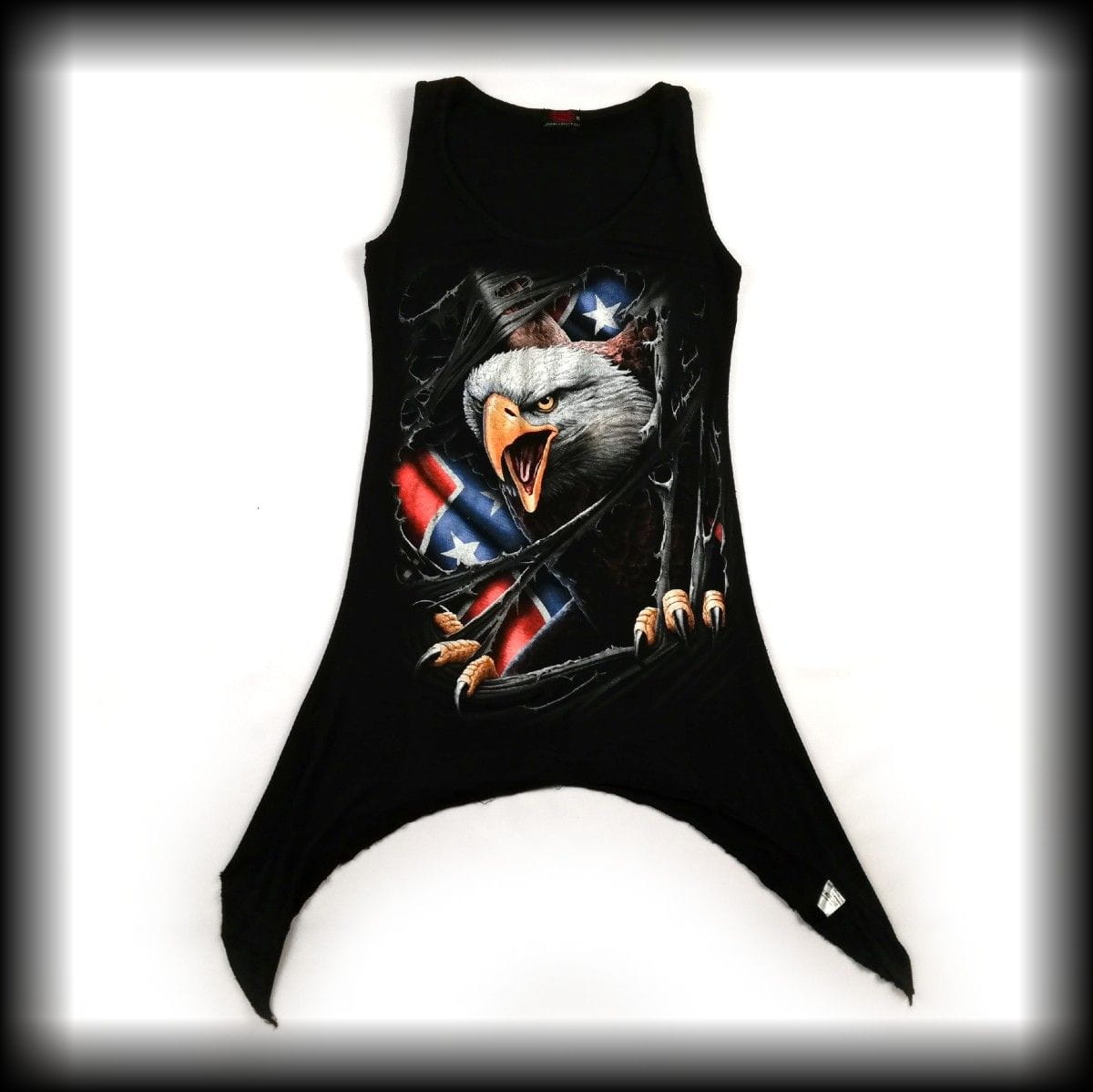 Czarna tunika z dzianiny bez rękawów z motywem orła i asymetrycznym dołem